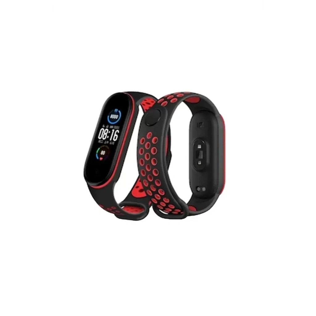 Xiaomi Mi Band 4 Spor Delikli Kordon - Siyah-Kırmızı