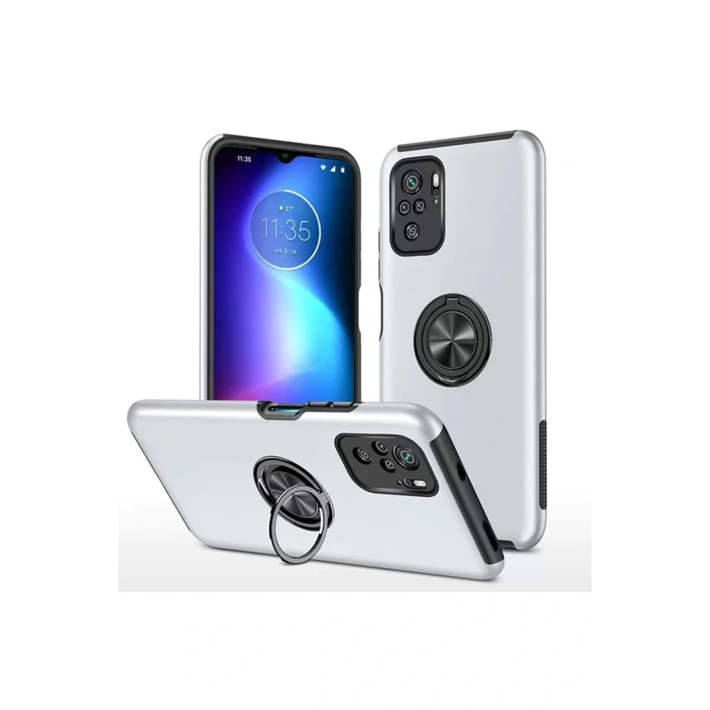 Xiaomi Poco F3 Kılıf Elit Yüzüklü Kapak - Gümüş