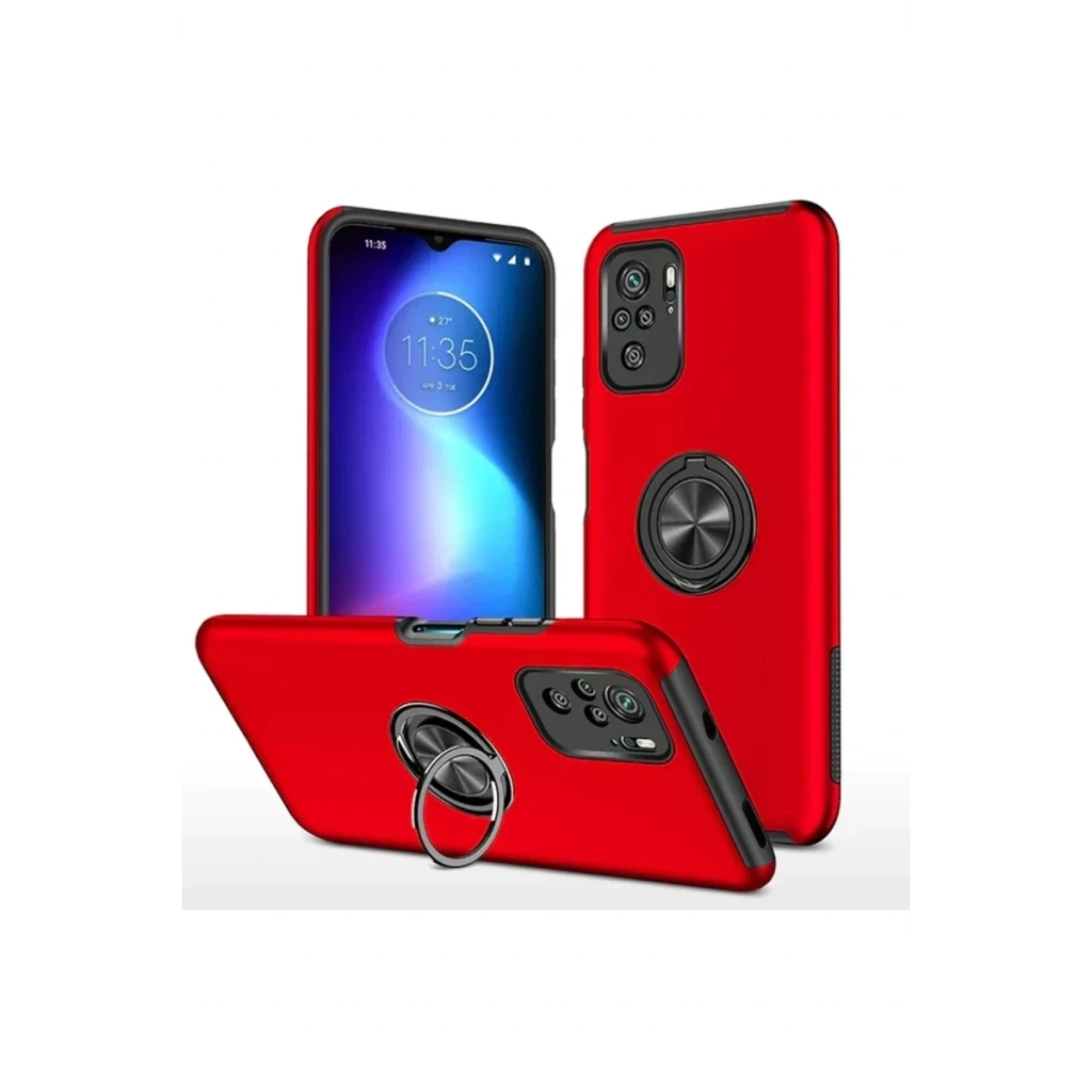 Xiaomi Poco F3 Kılıf Elit Yüzüklü Kapak - Kırmızı