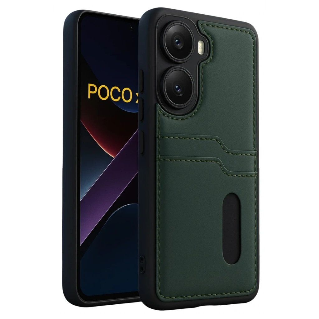 Xiaomi Poco X7 Pro Kılıf Sara Kartvizitli Deri Kılıf - Koyu Yeşil