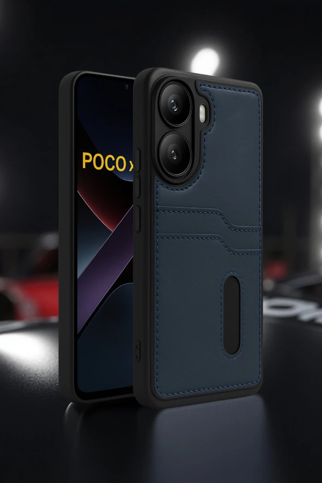 Xiaomi Poco X7 Pro Kılıf Sara Kartvizitli Deri Kılıf - Lacivert