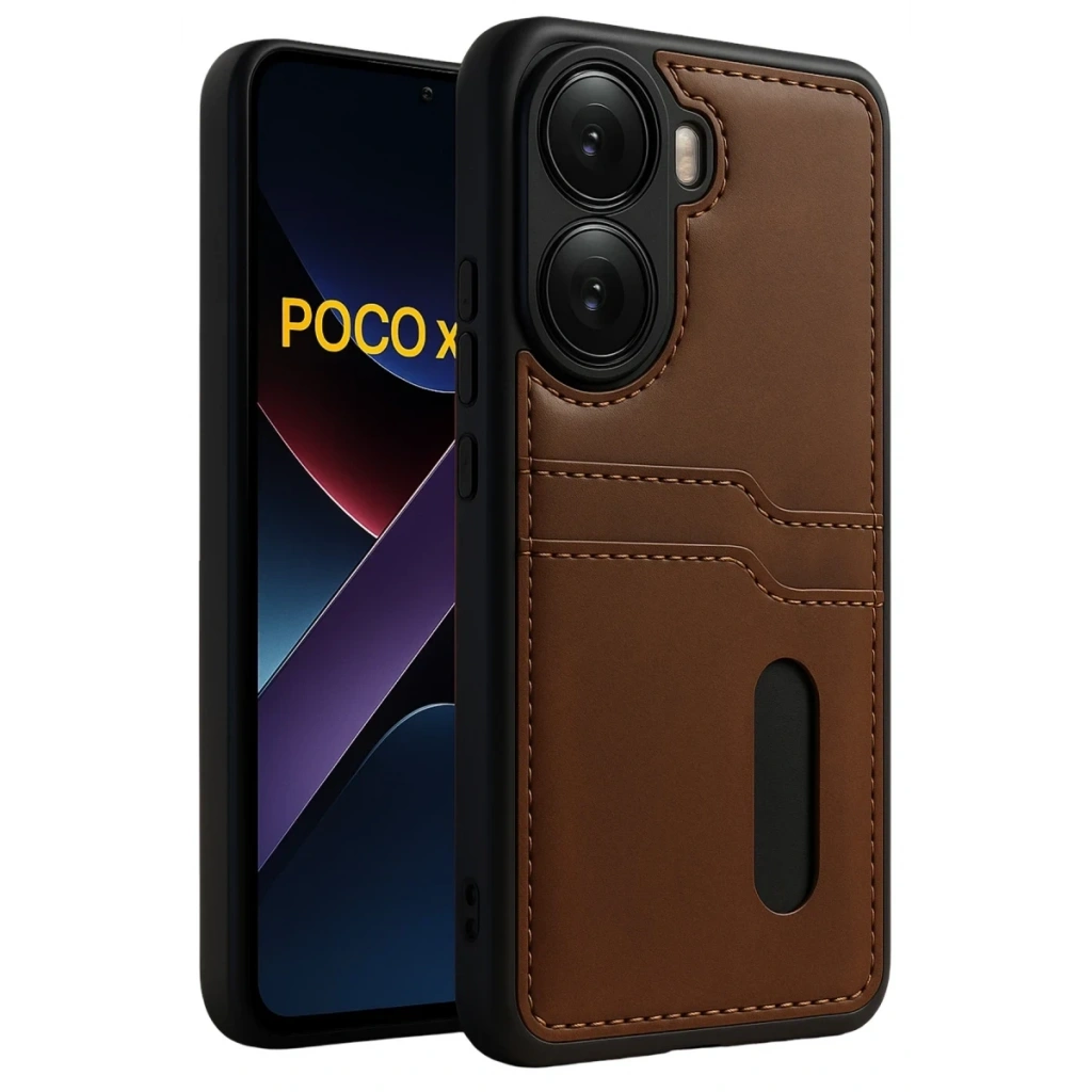 Xiaomi Poco X7 Pro Kılıf Sara Kartvizitli Deri Kılıf - Taba