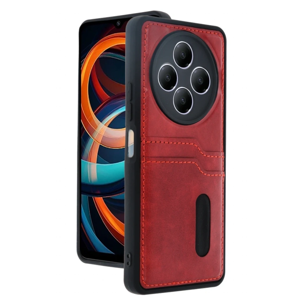 Xiaomi Redmi 14C Kılıf Sara Kartvizitli Deri Kılıf - Kırmızı