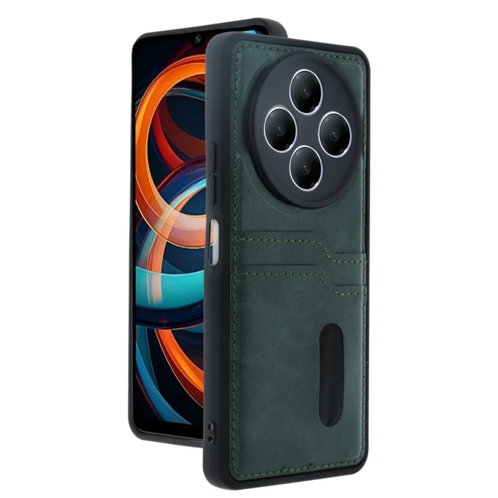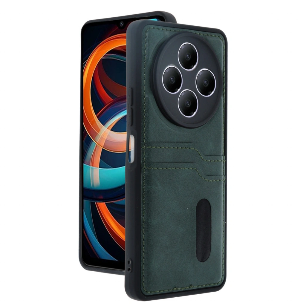 Xiaomi Redmi 14C Kılıf Sara Kartvizitli Deri Kılıf - Koyu Yeşil
