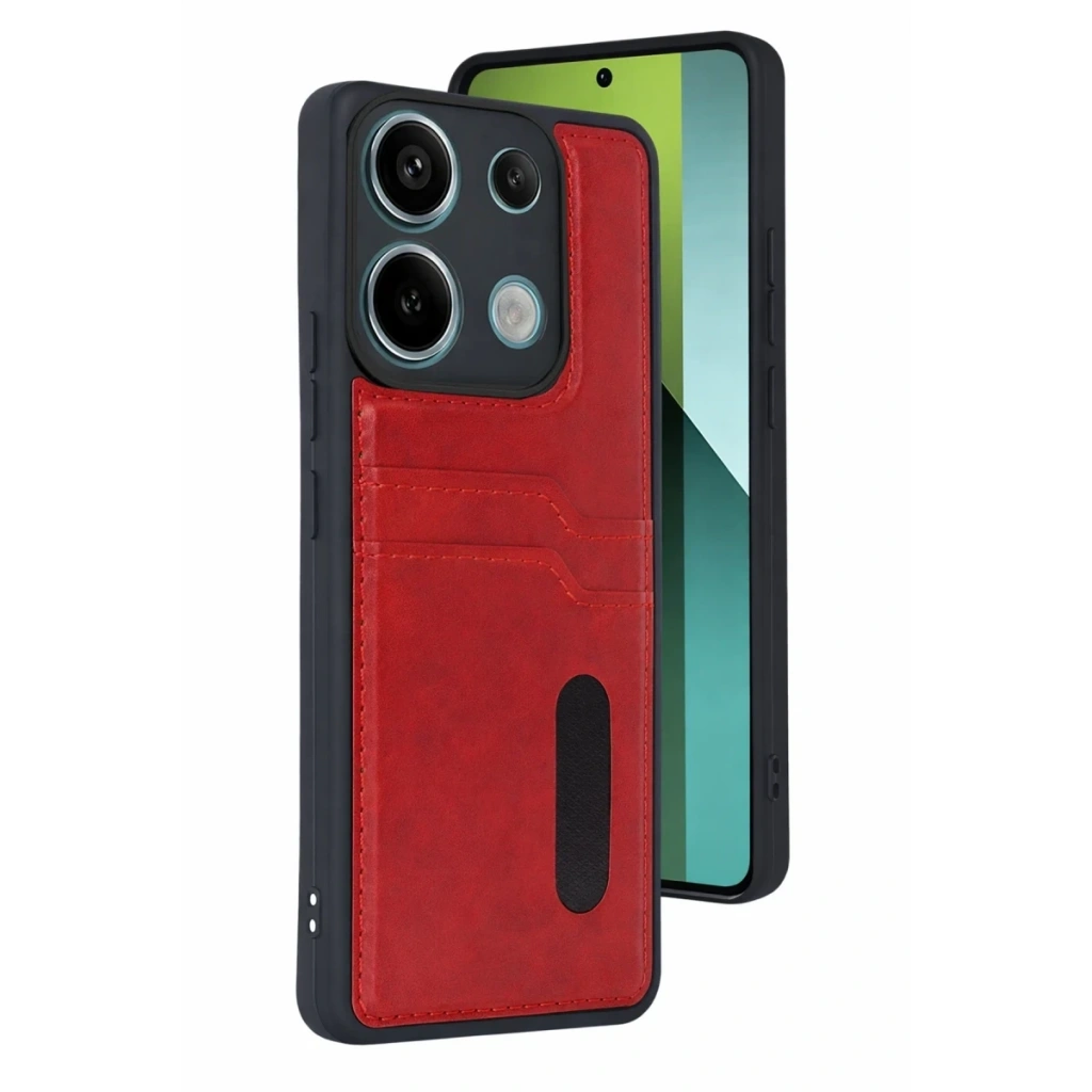 Xiaomi Redmi 15C 4G Sara Kartvizitli Deri Kılıf - Kırmızı