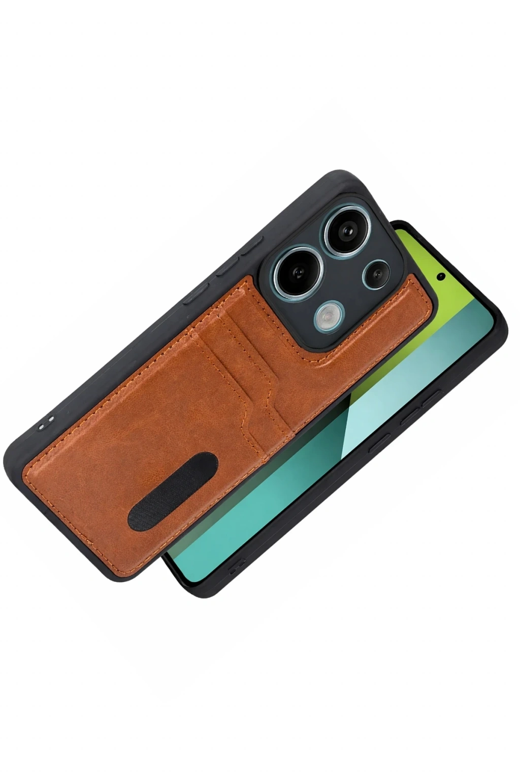 Xiaomi Redmi 15C 4G Sara Kartvizitli Deri Kılıf - Taba
