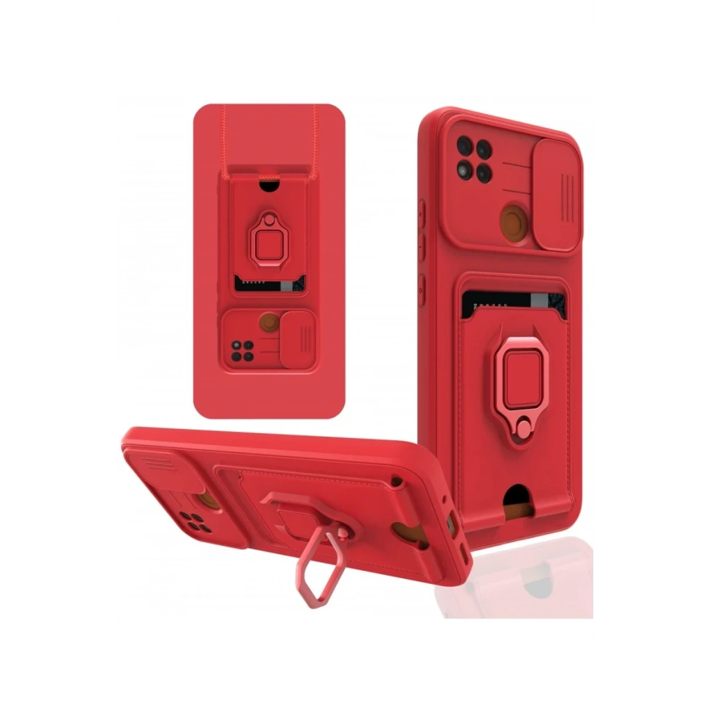 Xiaomi Redmi 9C Kılıf Zuma Kartvizitli Yüzüklü Silikon - Kırmızı