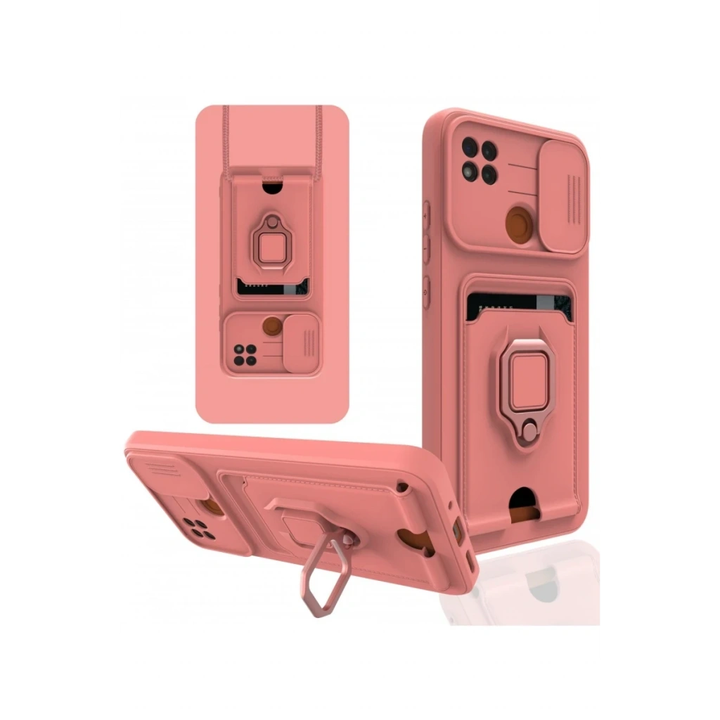 Xiaomi Redmi 9C Kılıf Zuma Kartvizitli Yüzüklü Silikon - Pembe