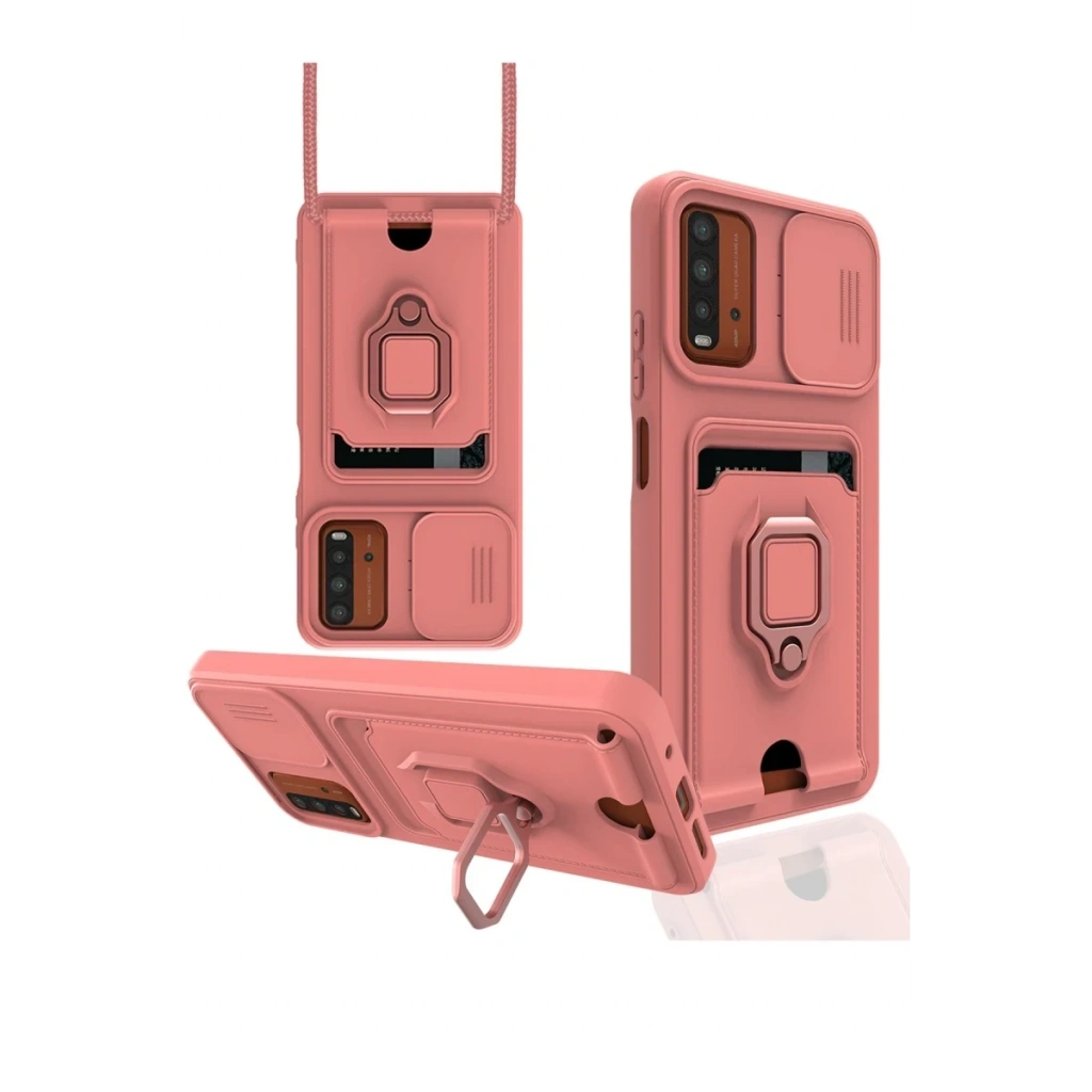 Xiaomi Redmi 9T Kılıf Zuma Kartvizitli Yüzüklü Silikon - Pembe