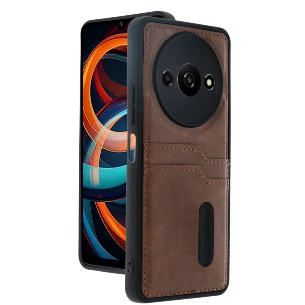 Xiaomi Redmi A3 4G Kılıf Sara Kartvizitli Deri Kılıf - Taba