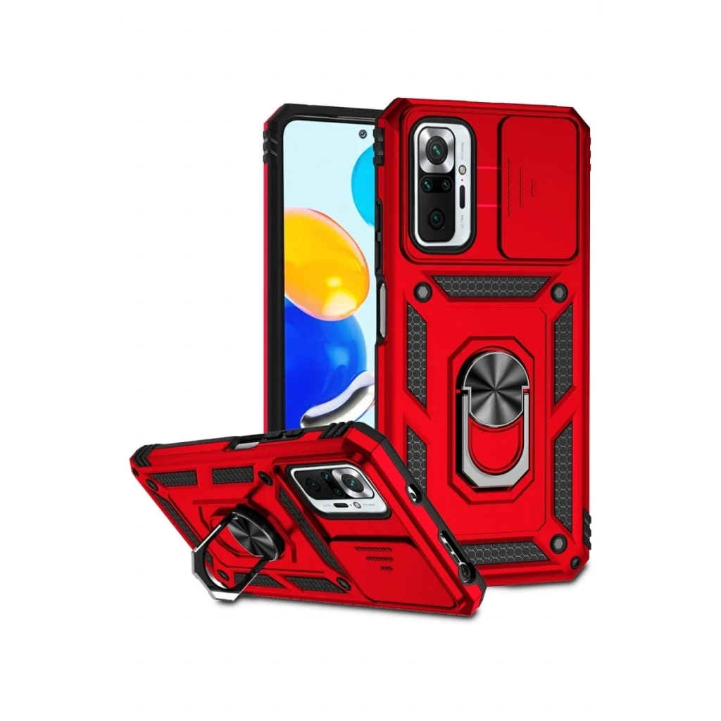 Xiaomi Redmi Note 10 Pro Kılıf Pars Lens Yüzüklü Silikon - Kırmızı
