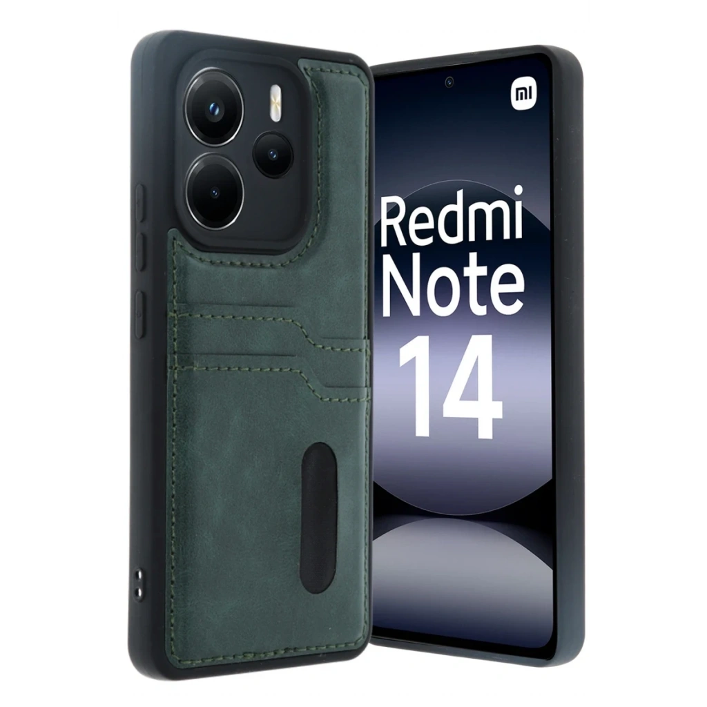Xiaomi Redmi Note 14 4G Kılıf Sara Kartvizitli Deri Kılıf - Koyu Yeşil