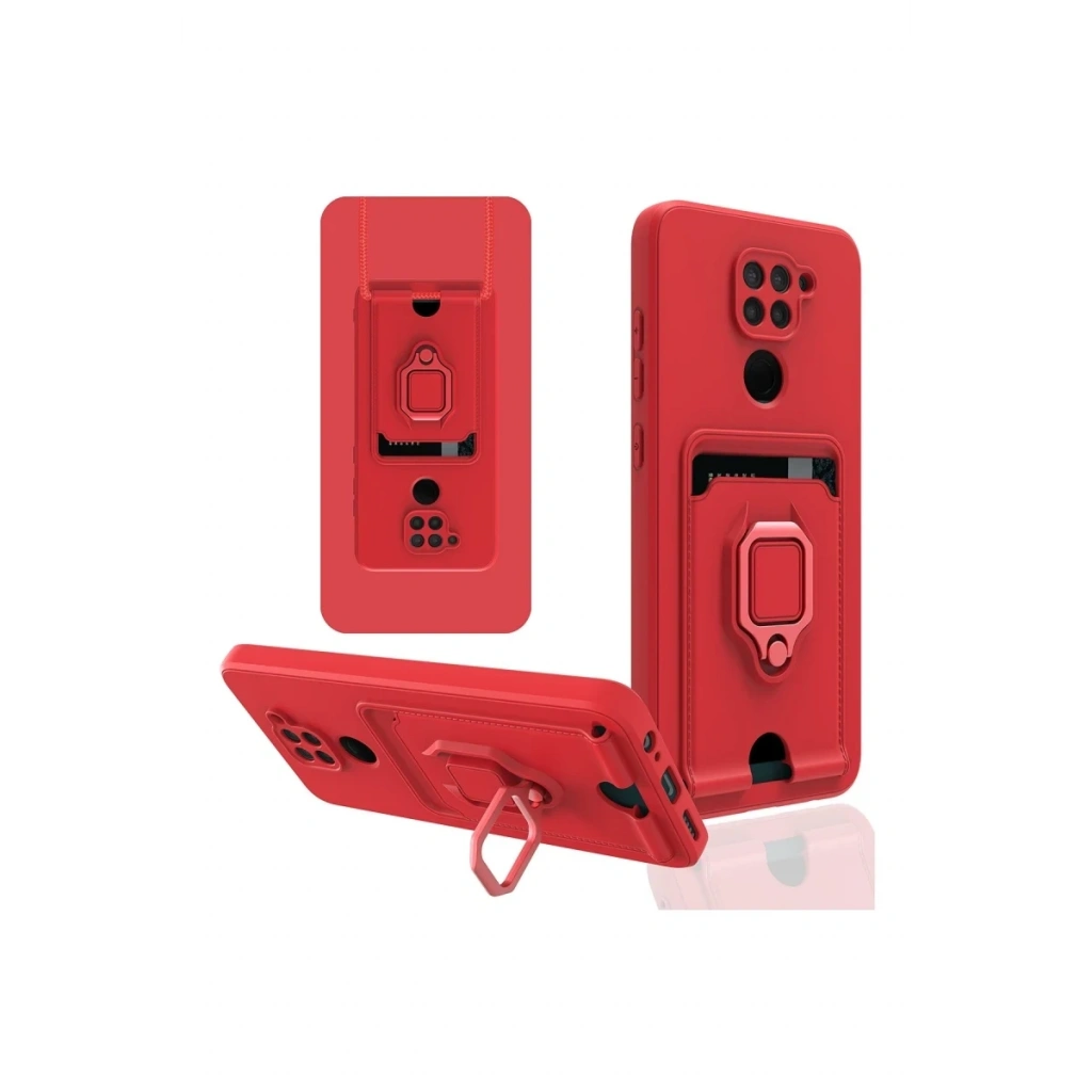 Xiaomi Redmi Note 9 Kılıf Zuma Kartvizitli Yüzüklü Silikon - Kırmızı