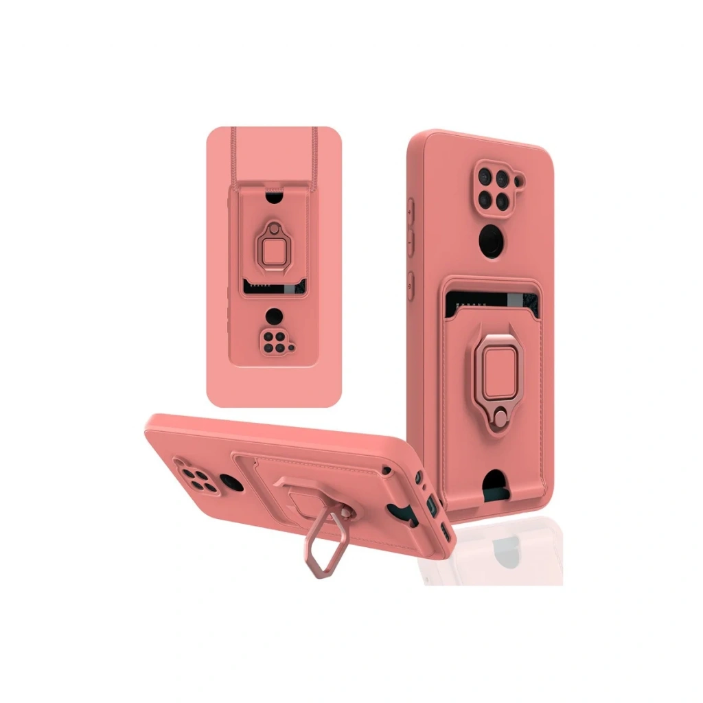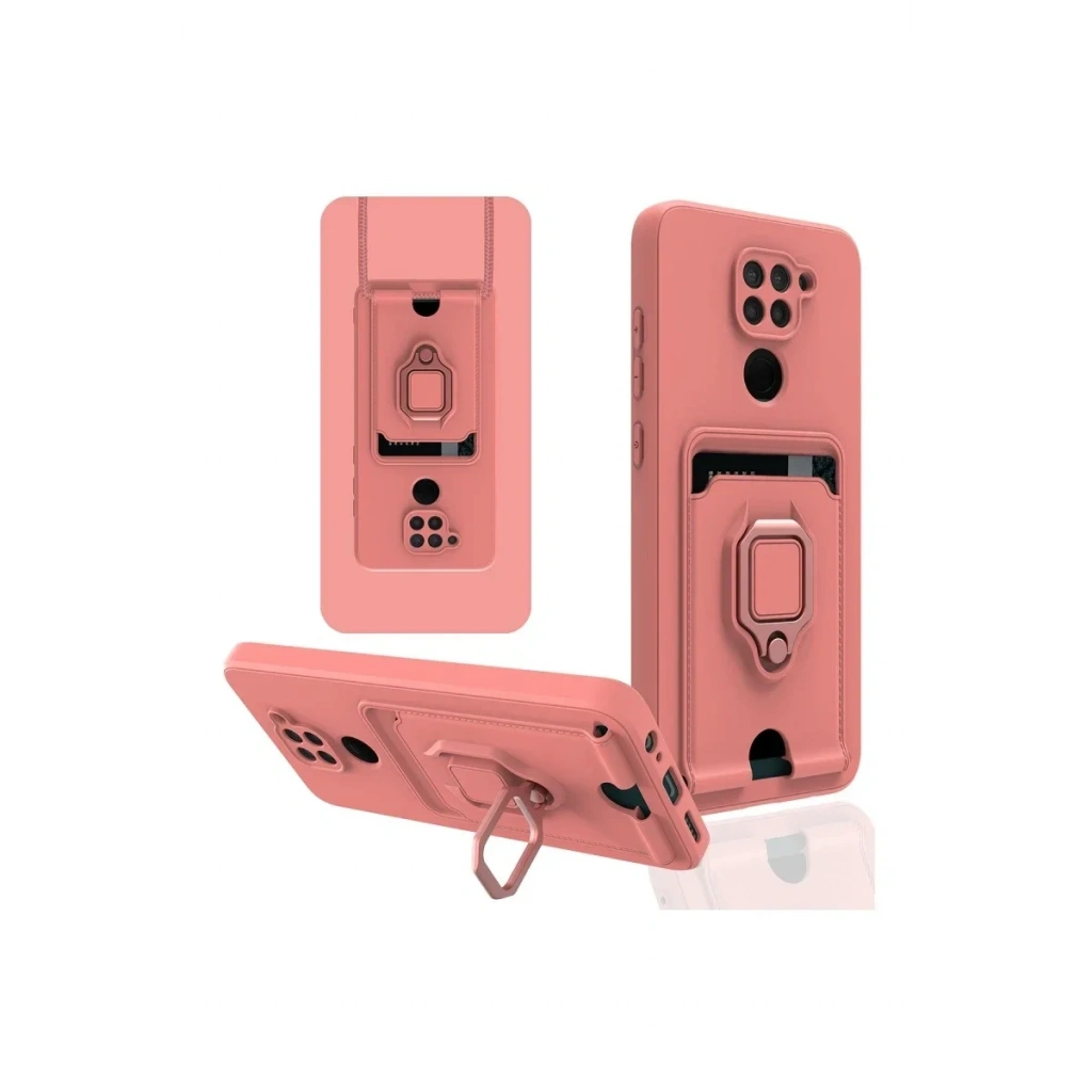 Xiaomi Redmi Note 9 Kılıf Zuma Kartvizitli Yüzüklü Silikon - Pembe