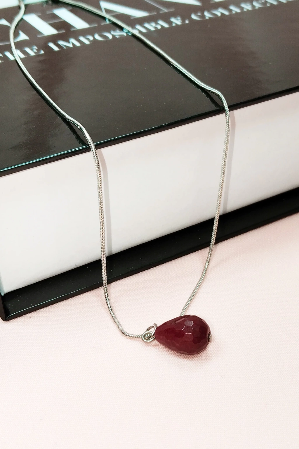 Yakut Doğal Taşı Zincirli El Yapımı Kolye Uç: 1,5 cm Zincir: 20 cm Kutulu