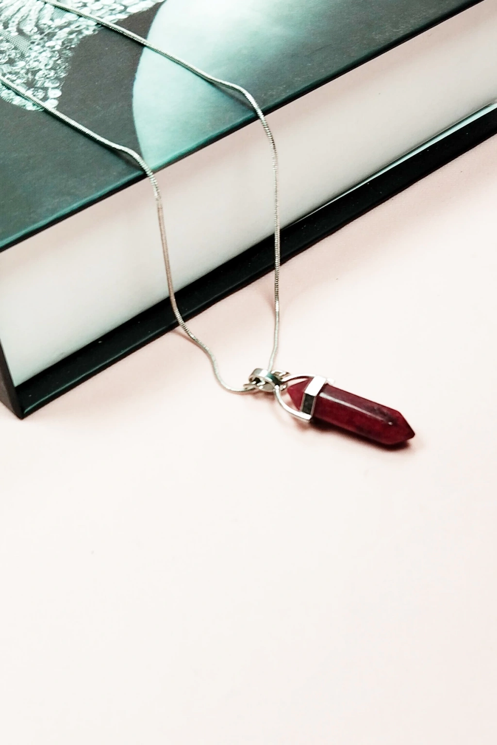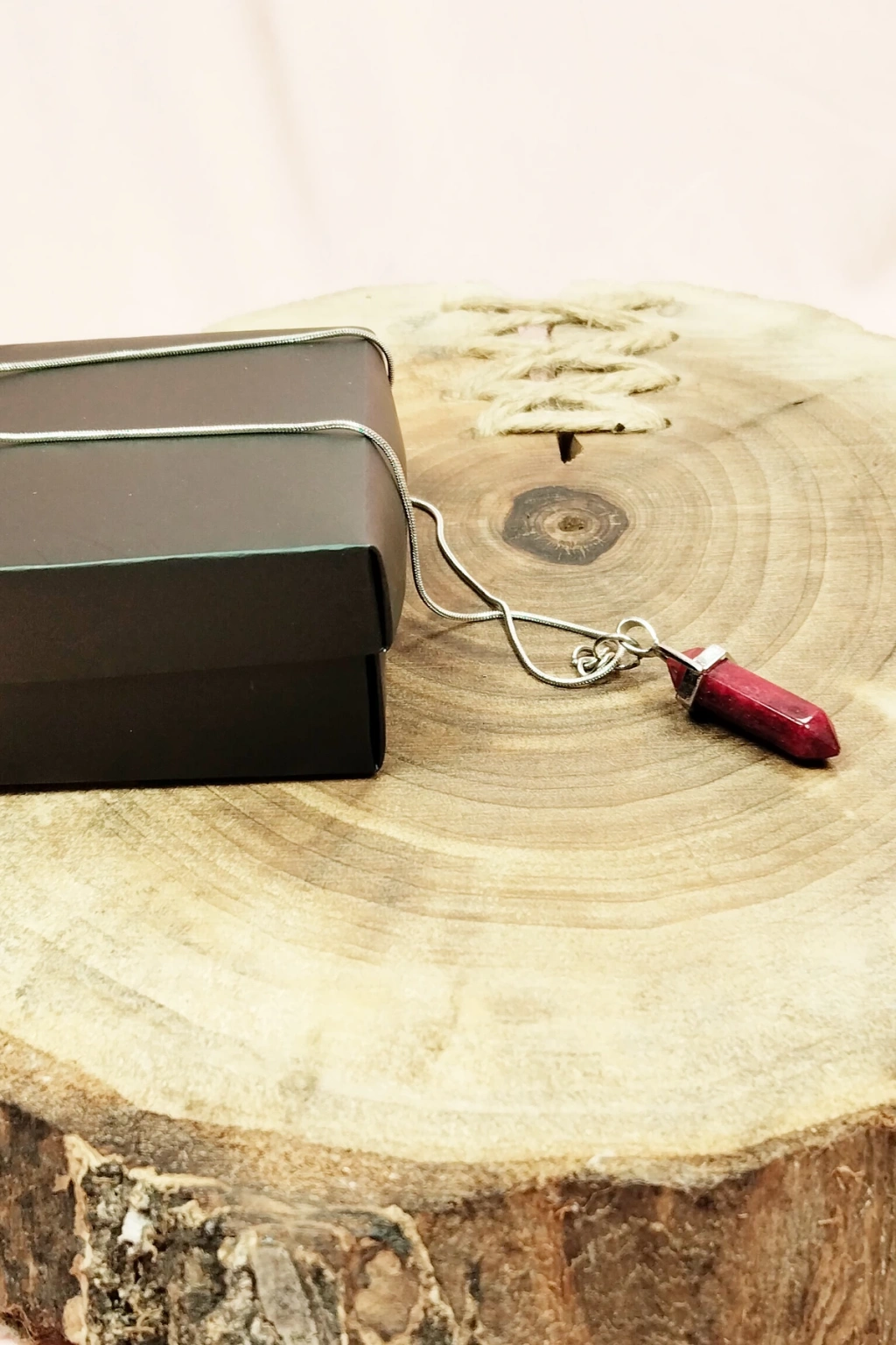 Yakut Doğal Taşı Zincirli El Yapımı Tasarımlı Kolye Uç: 3,5 cm Zincir: 20 cm Kutulu