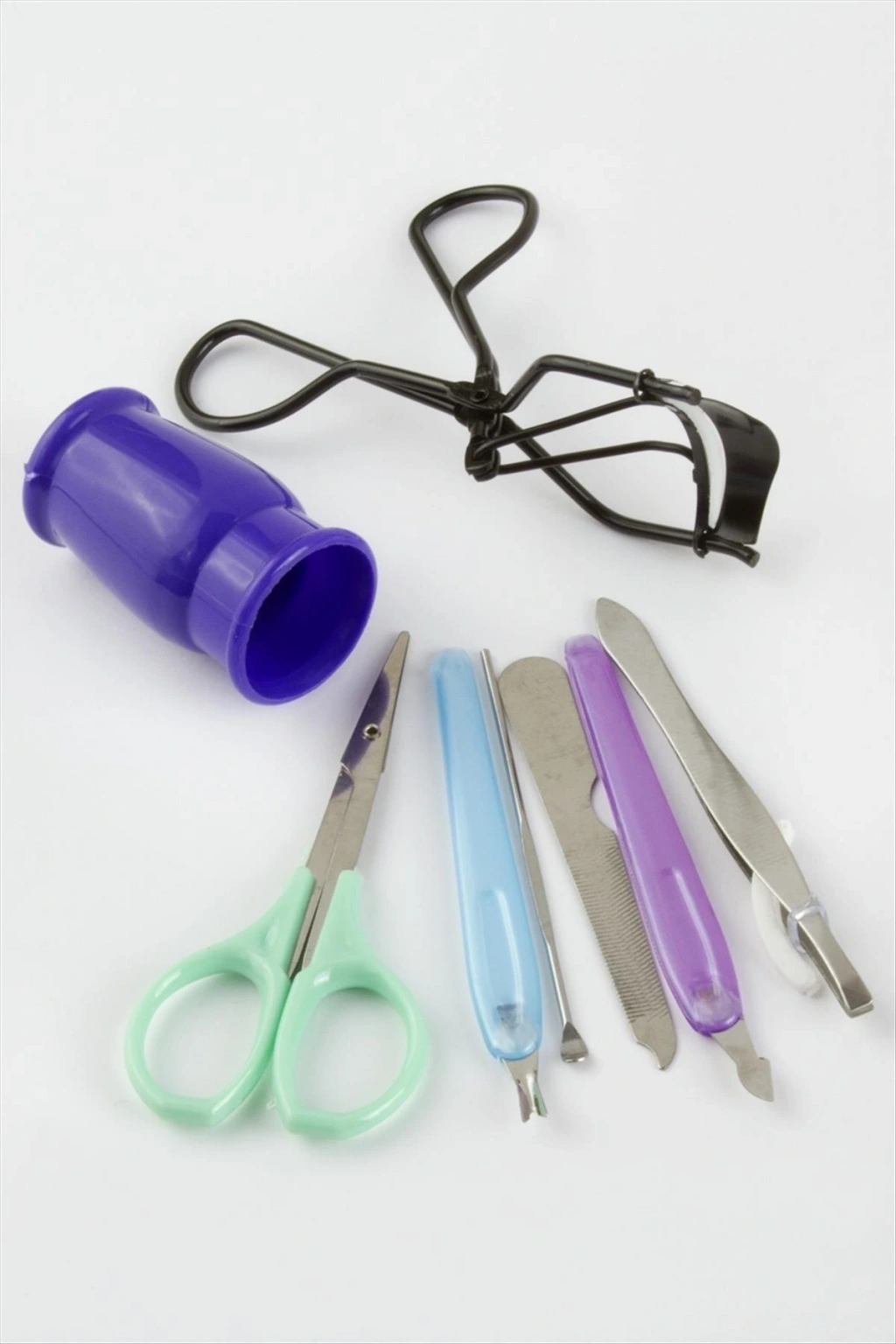 Manikür Set; Ürün içersinde tarak, törpü, cımbız, makas, açacak, tırnak makası ve kirpik makası bulunmaktadır.Ürün renkleri asortilidir. Siparişlerinizde karışık olarak gönderilecektir.