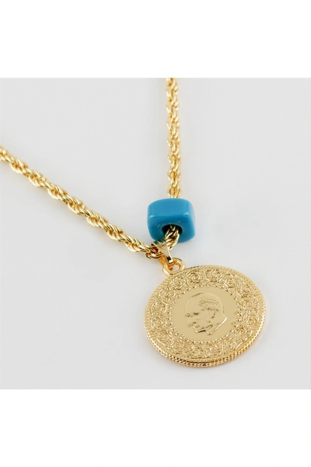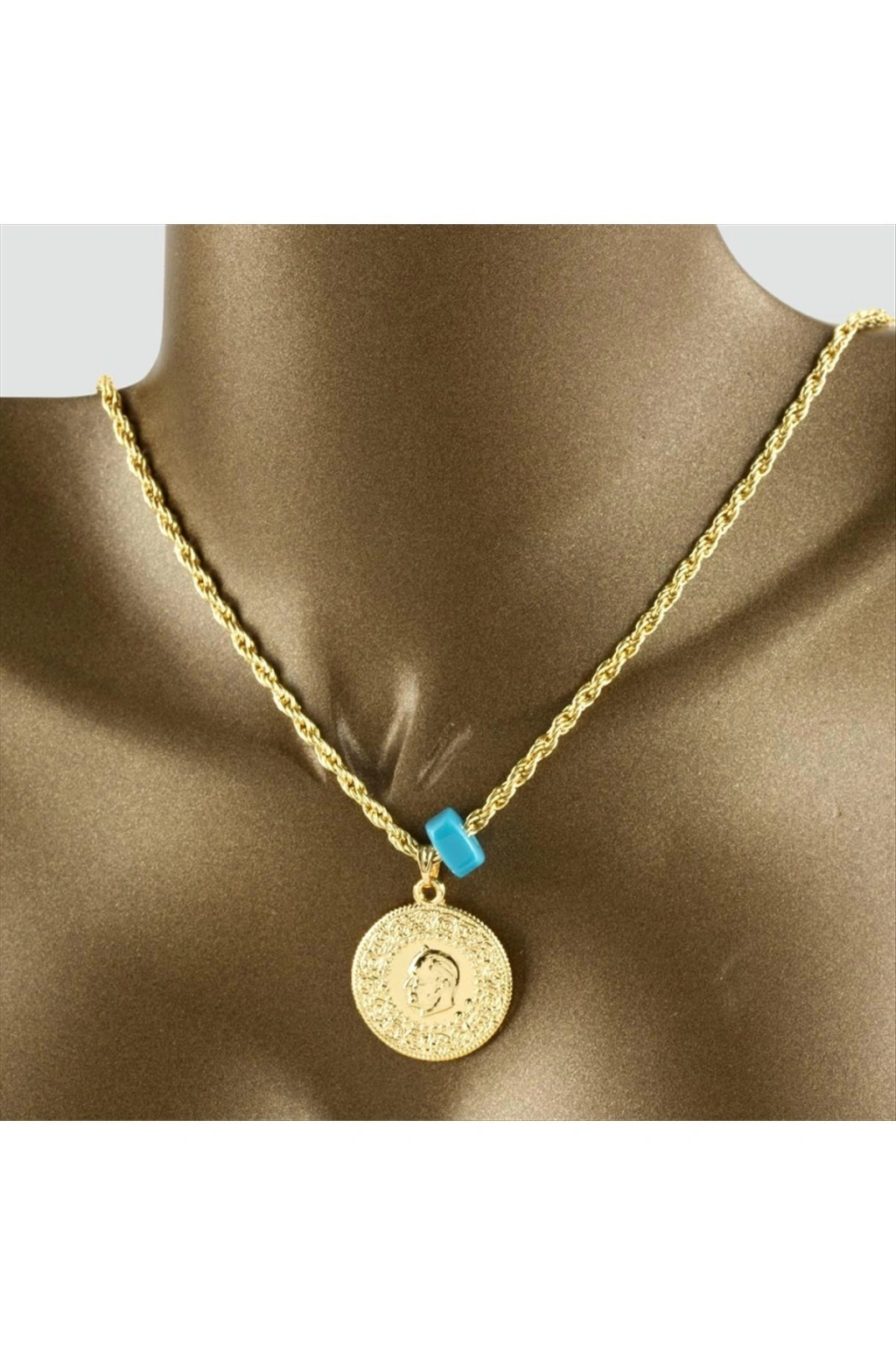 Kolye; Ürün malzemesi metal ve boncuktur. Ürü uzunluğu 45 cmdir.