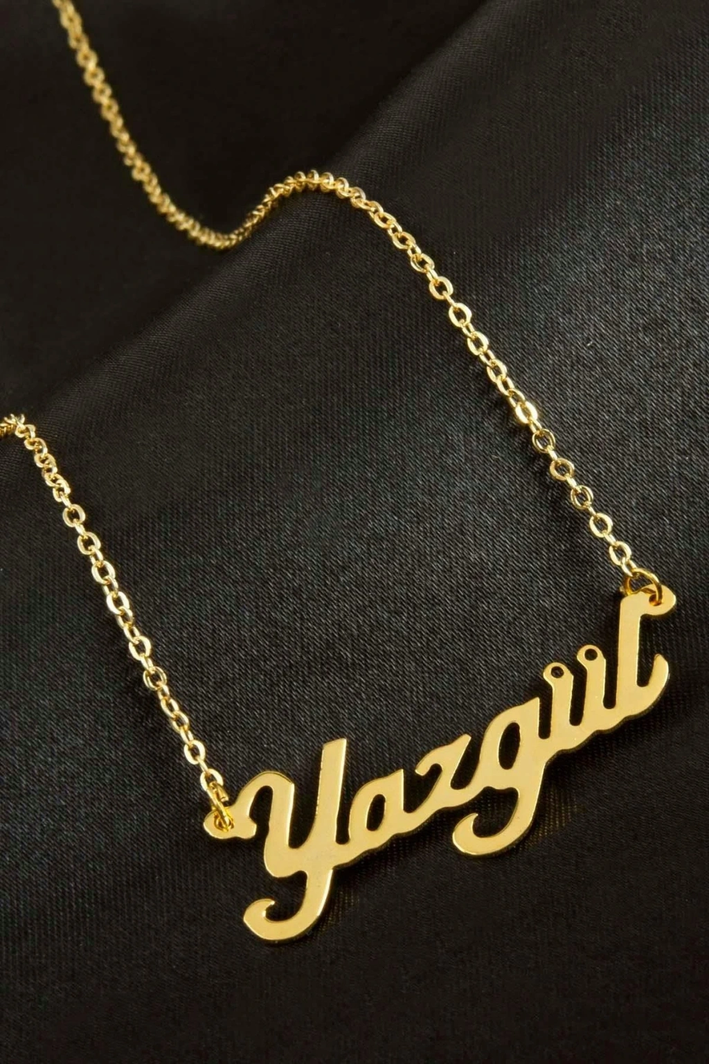 Yazgül isimli kolye. İsimli kolye pirinç madeninden ve altın kaplamalıdır. Kişiye özel üretilmektedir.Yazdırmak istediğiniz ismi bize mesaj olarak iletmeniz gerekmektedir. Kullanıma bağlı olarak uzun süre kullanıma uygundur. Ürün malzemesi 1.sınıf kalitededir. Ürün ve zinciri sarı renktedir. Ürün zincir boyu 45 cm ve ürün üzerindeki isimler yaklaşık 3 cmdir. İsim boyları ürün ismine göre degişiklik göstermektedir.