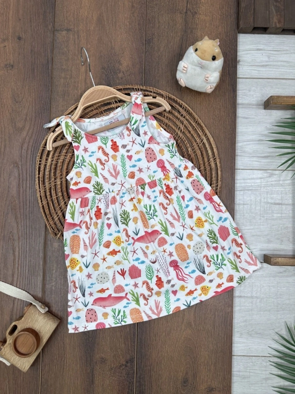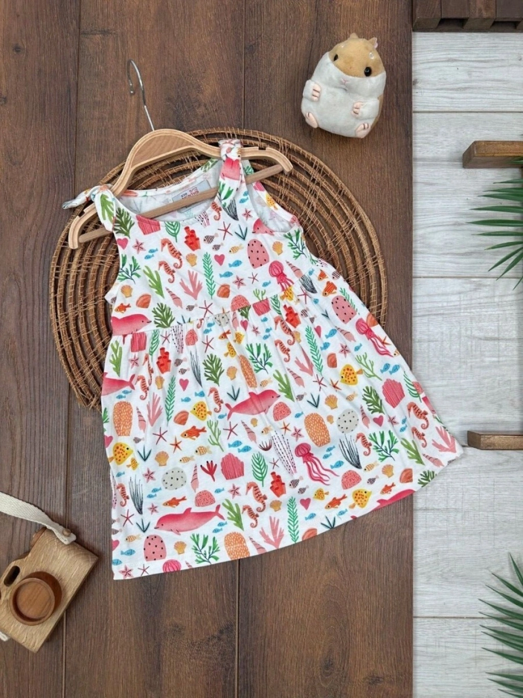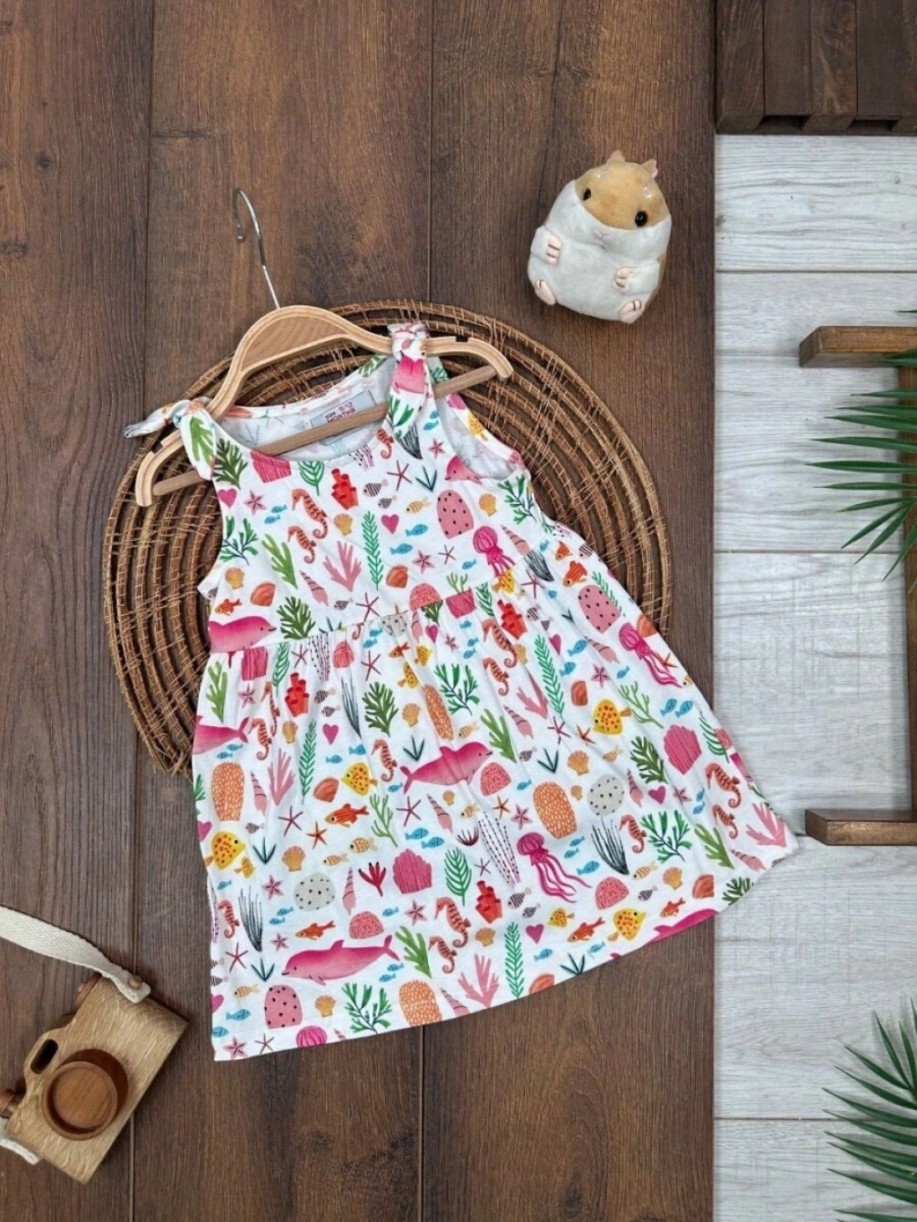 Yazlık Pamuklu Deniz Temalı Kolsuz Kız Çocuk Elbise