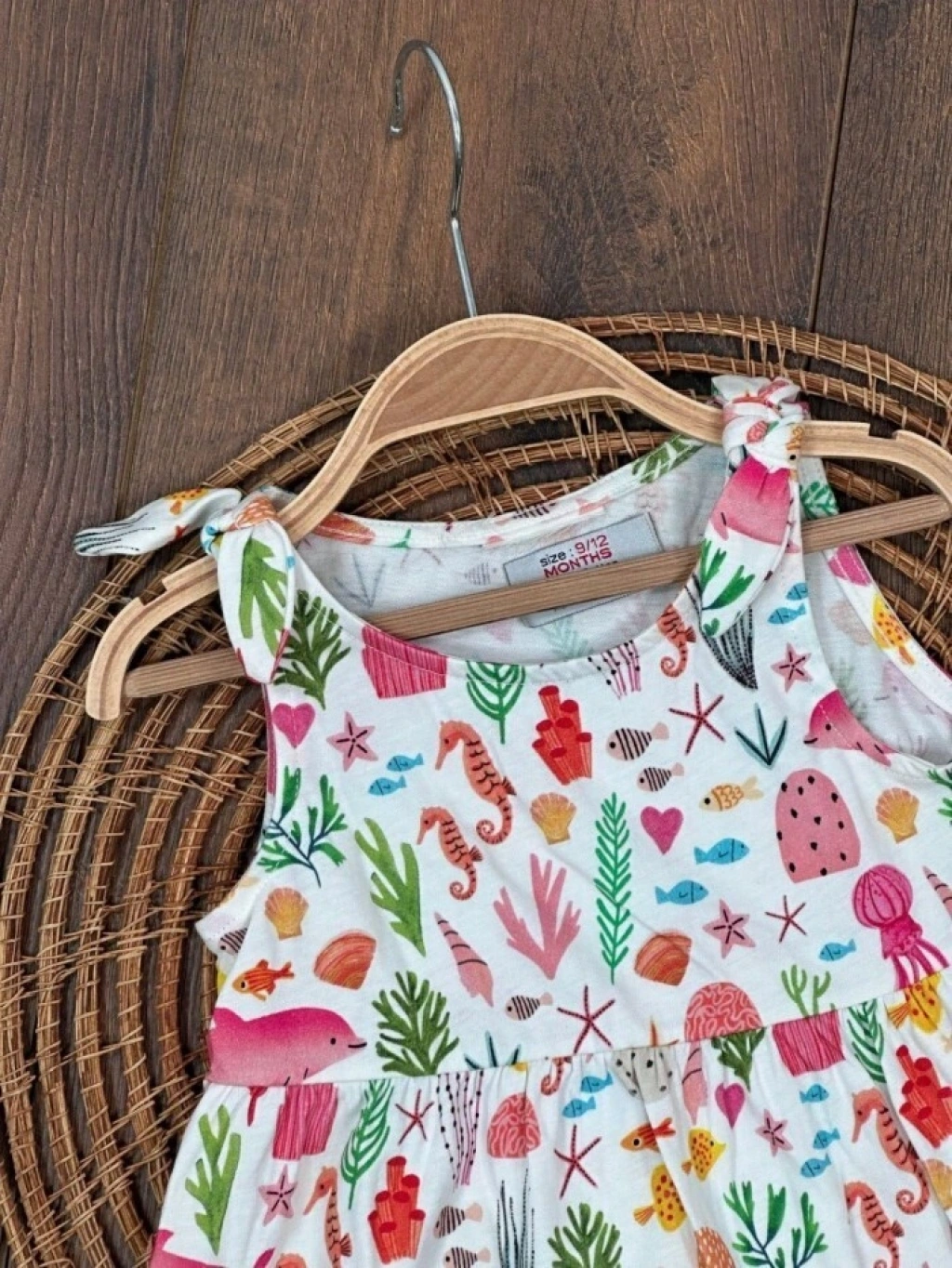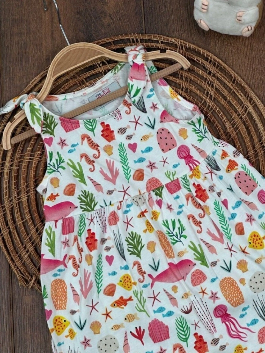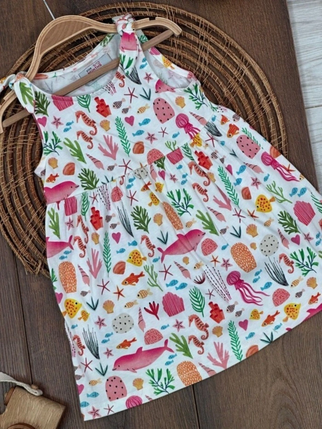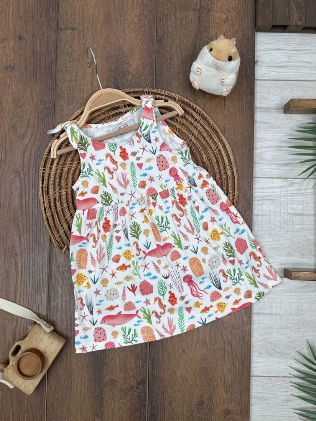 Yazlık Pamuklu Deniz Temalı Kolsuz Kız Çocuk Elbise