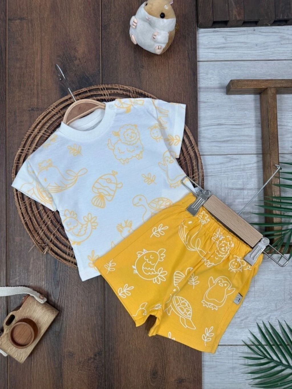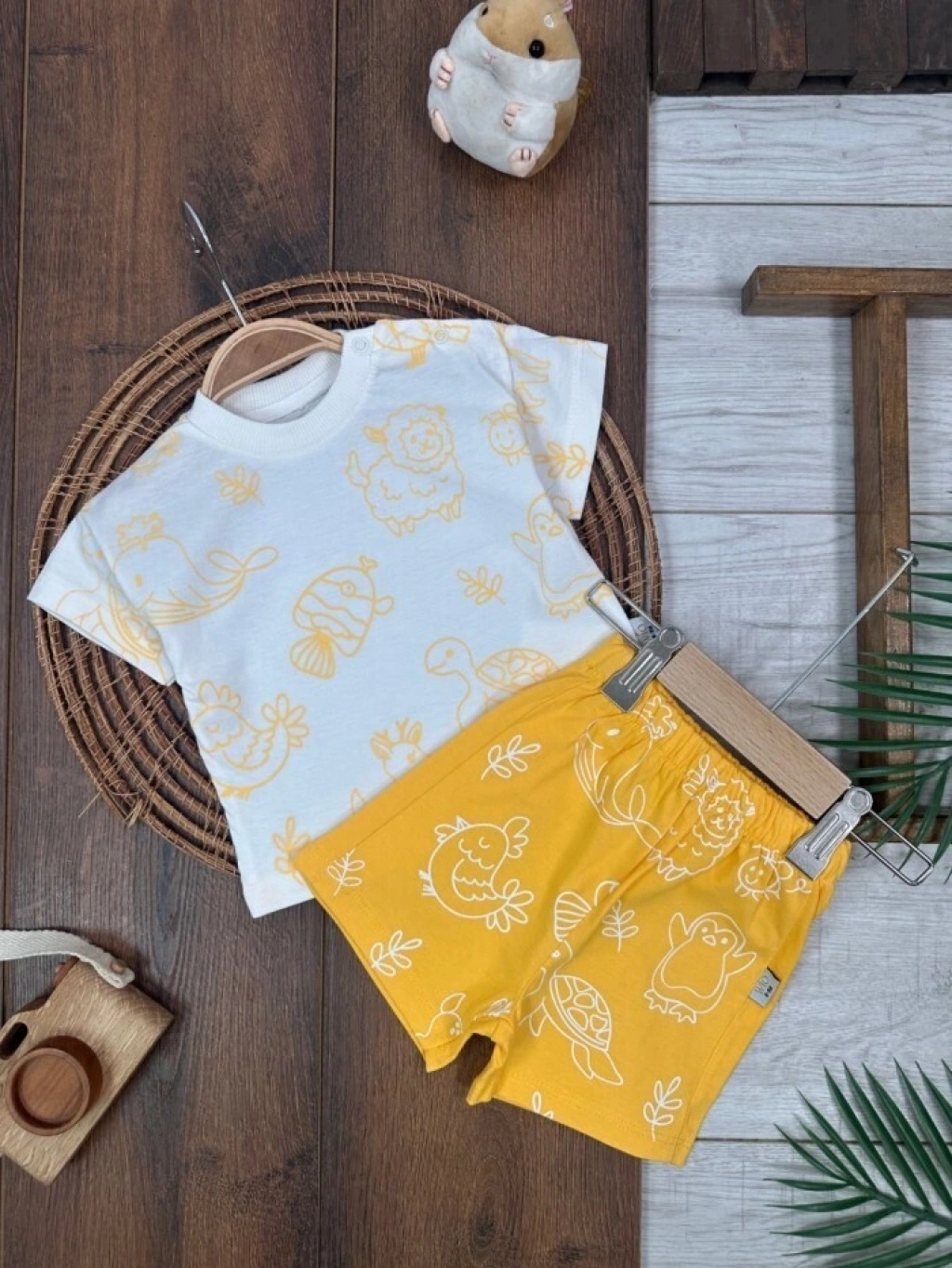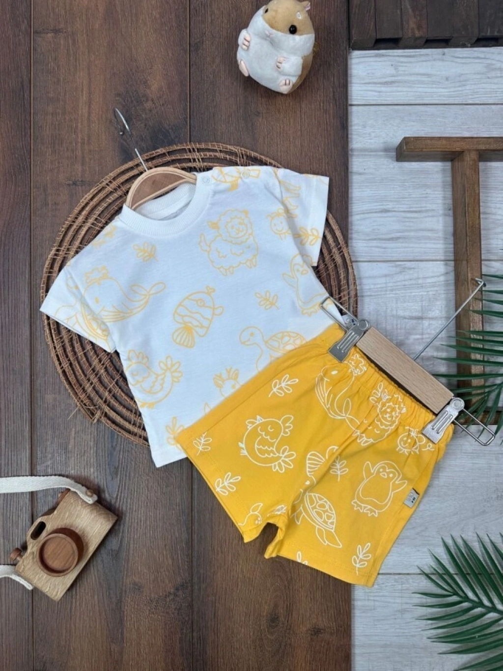 KAHVERENGI KISA KOLLU KIZ PAMUKLU ÇOCUK & 2 PARÇA BEBEK TULUM