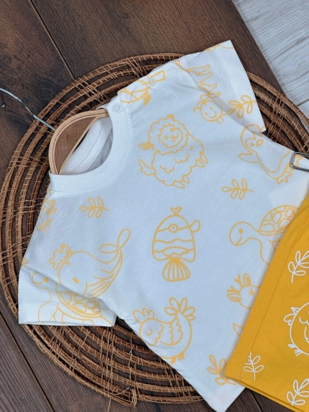 KREM BİSİKLET YAKA KISA KOLLU LASTİKLİ BEL KIZ ÇOCUK & BEBEK ALT ÜST TAKIM