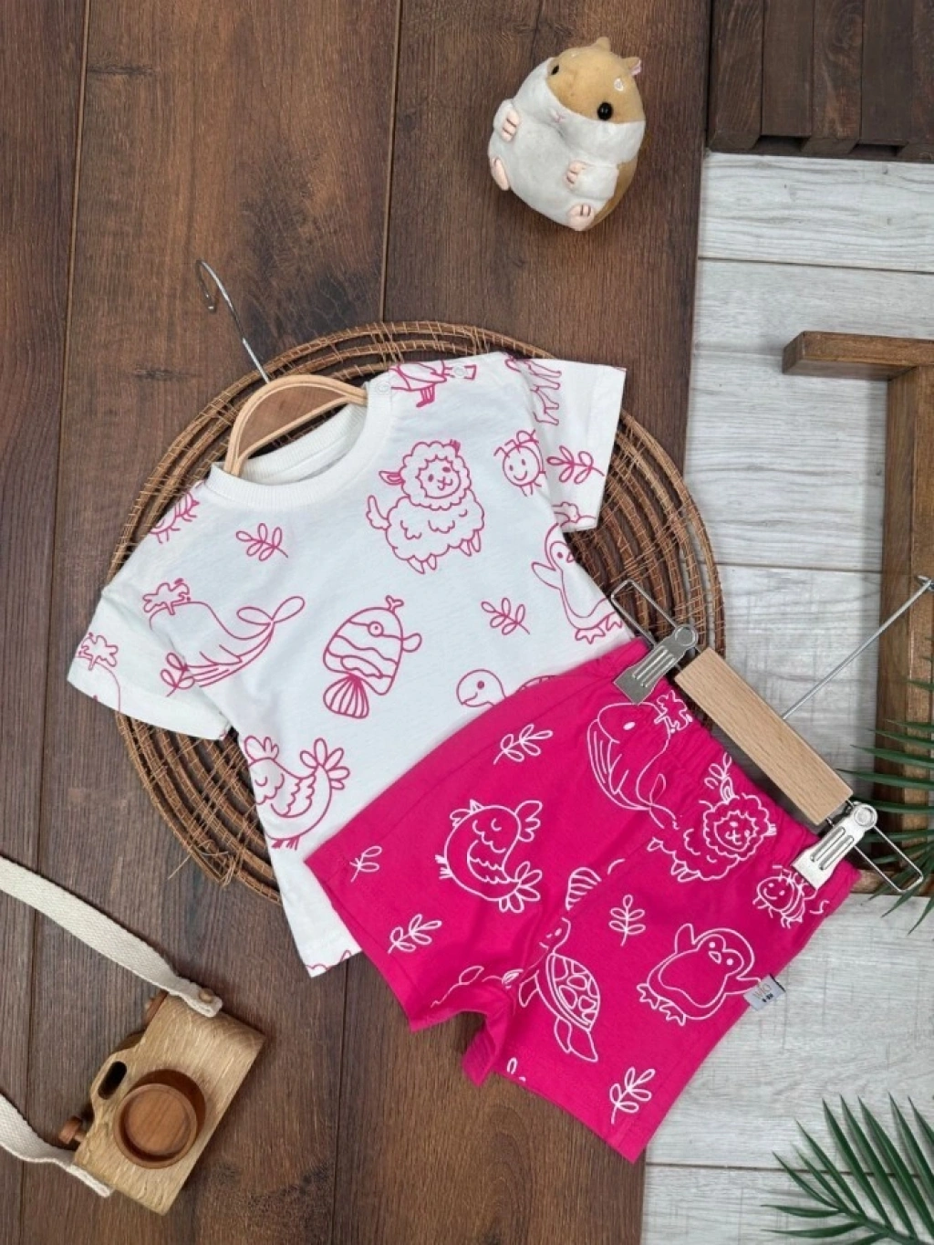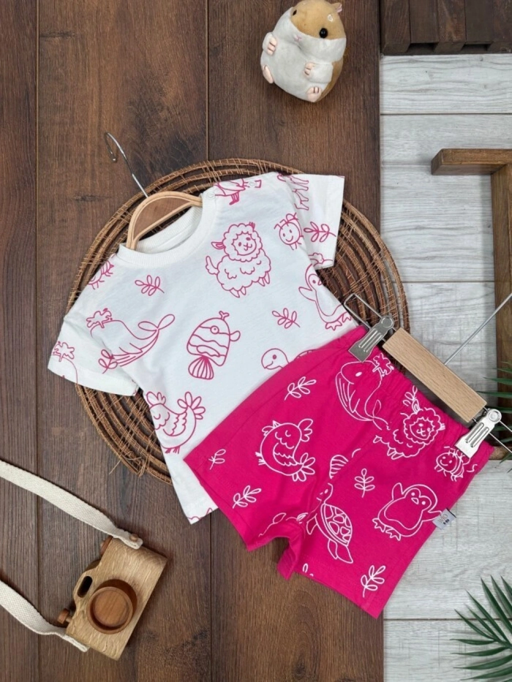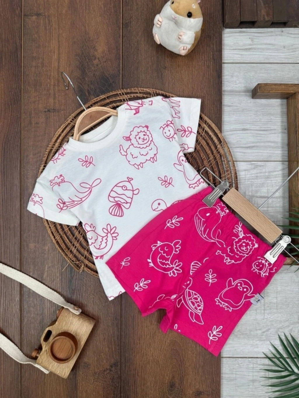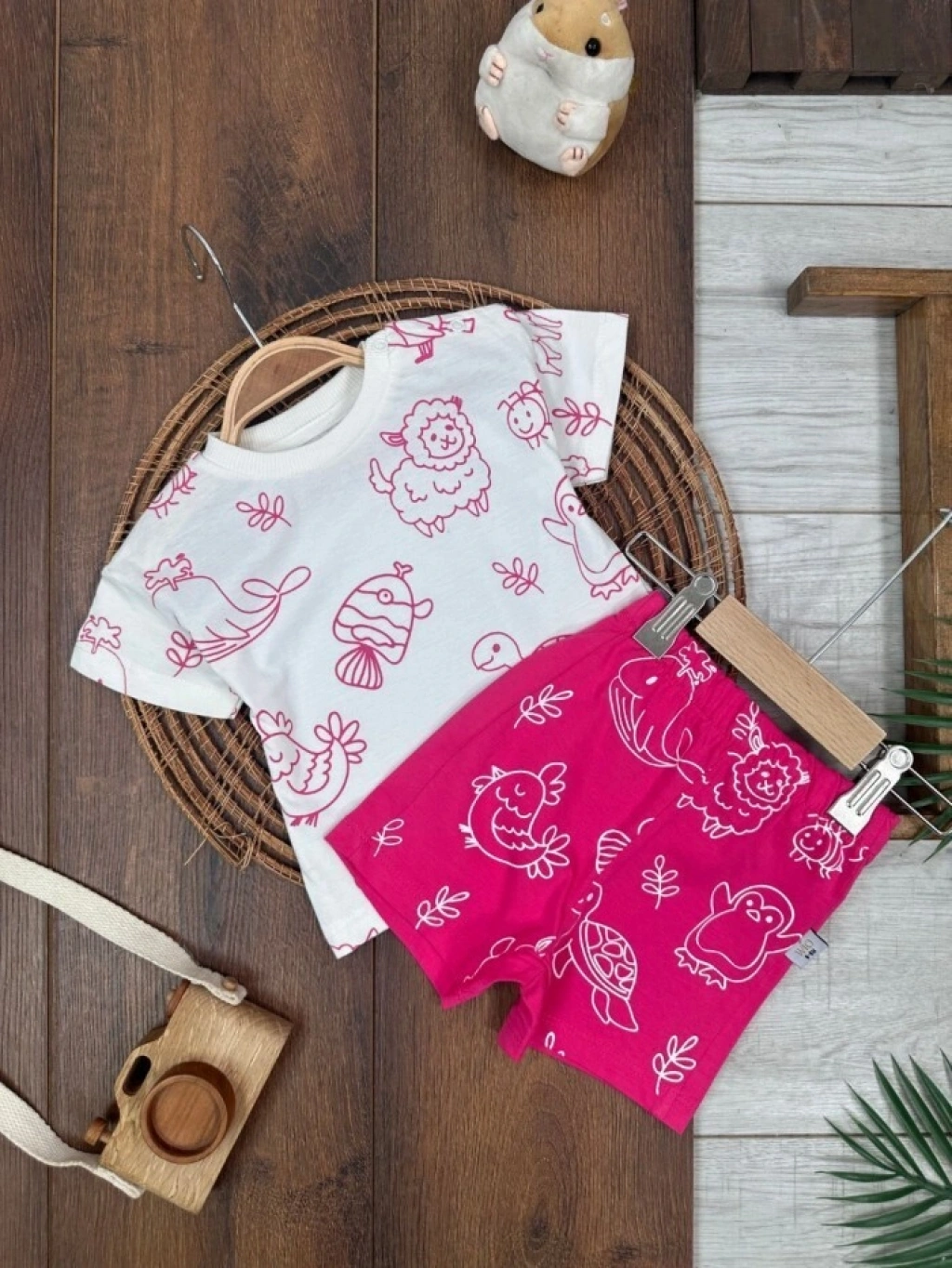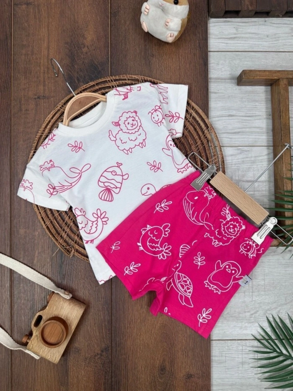 KAHVERENGI KISA KOLLU KIZ PAMUKLU ÇOCUK & 2 PARÇA BEBEK TULUM