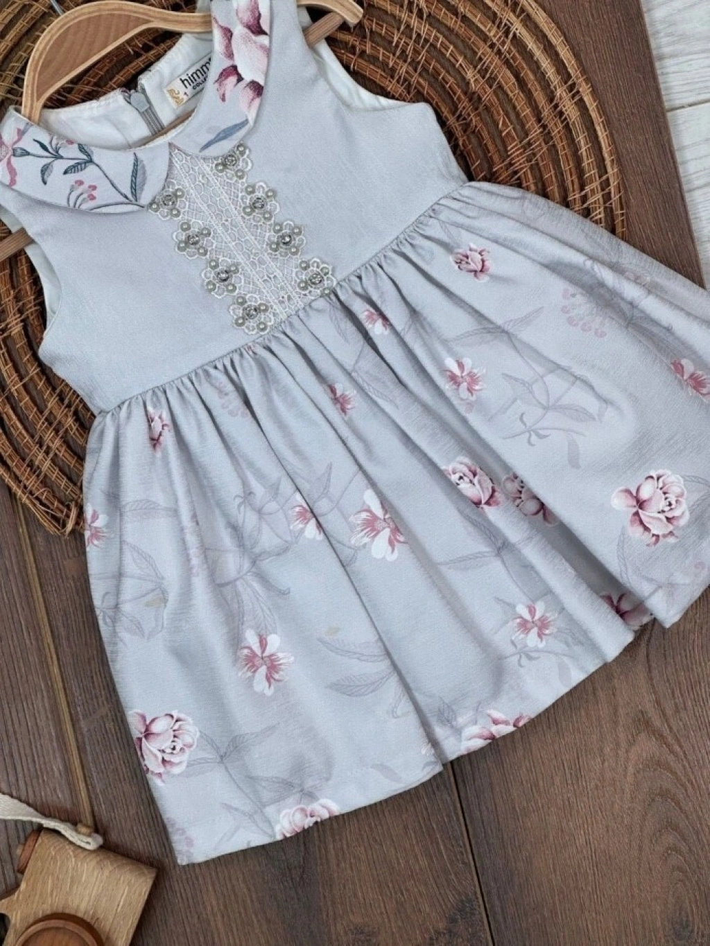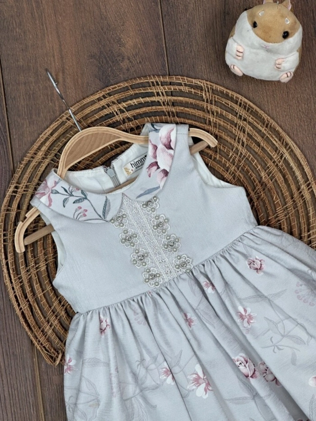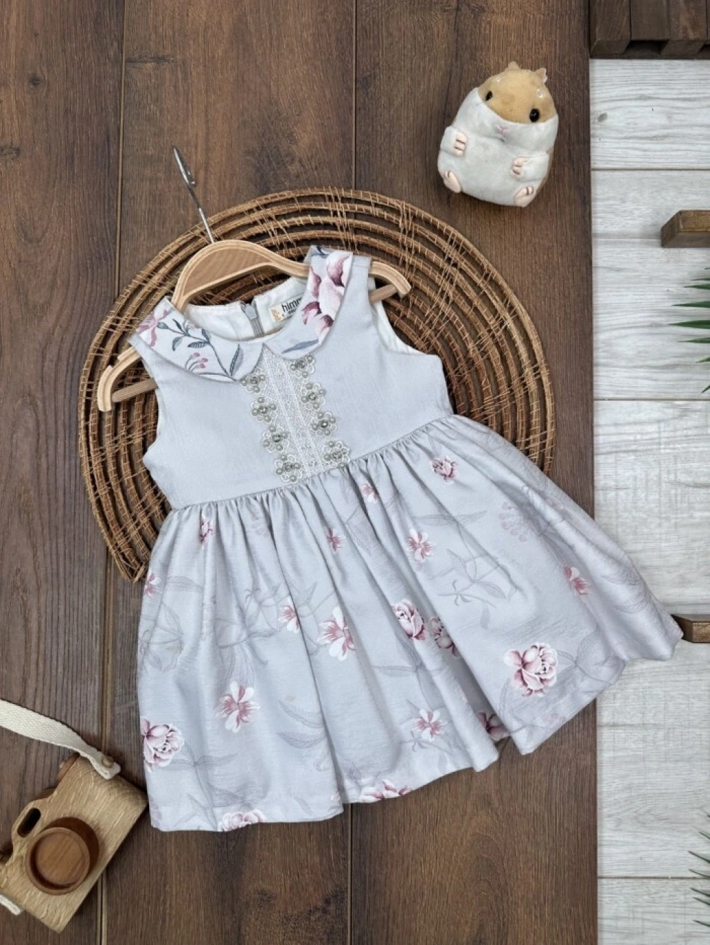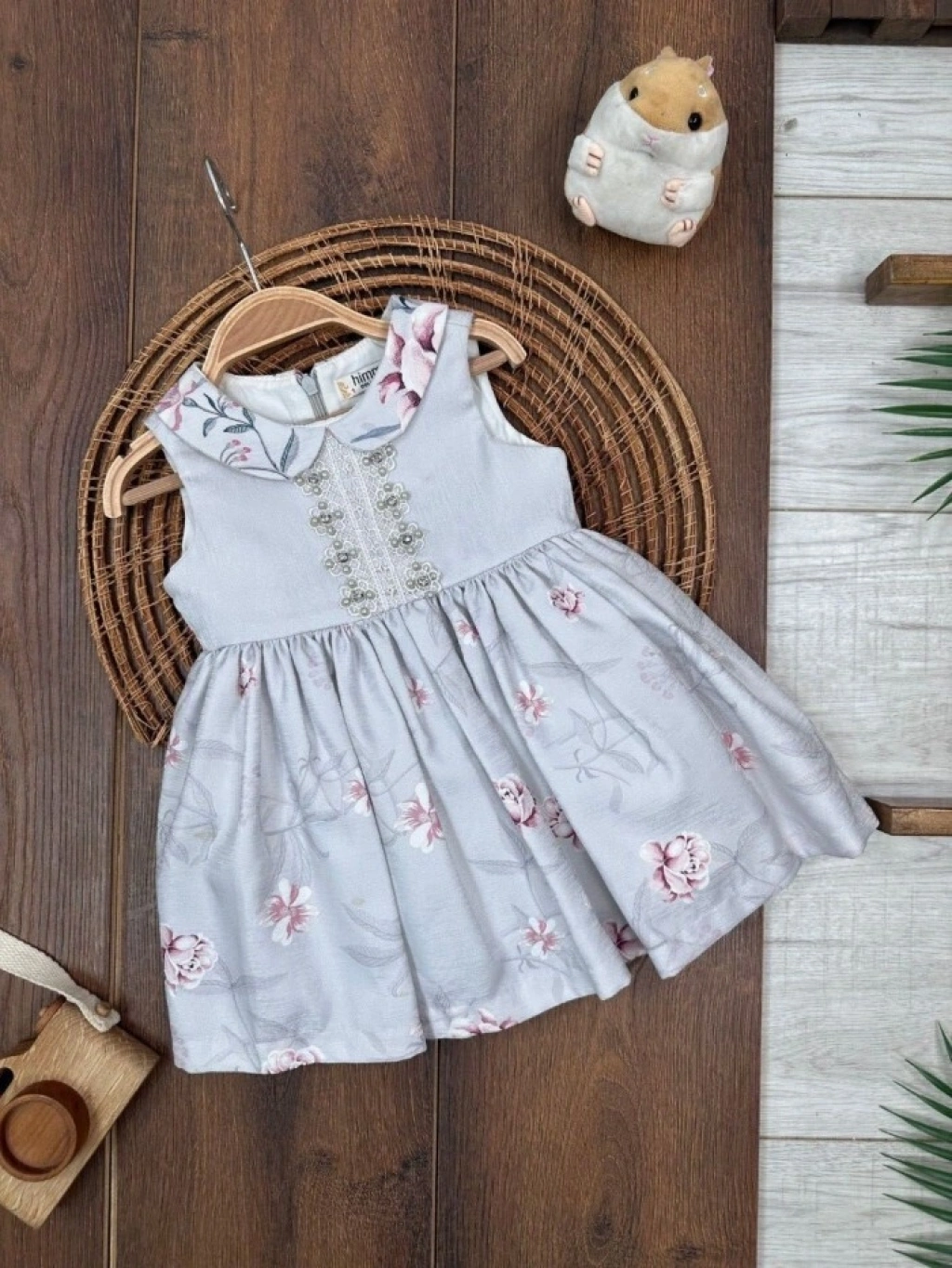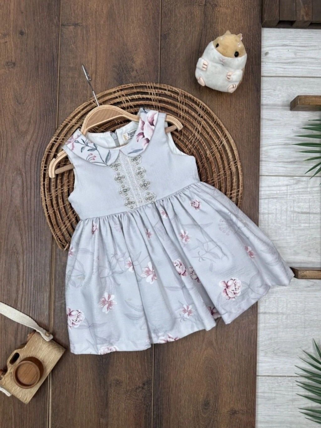 Pamuk Keten Diz Altı Kız Bebek Elbise
