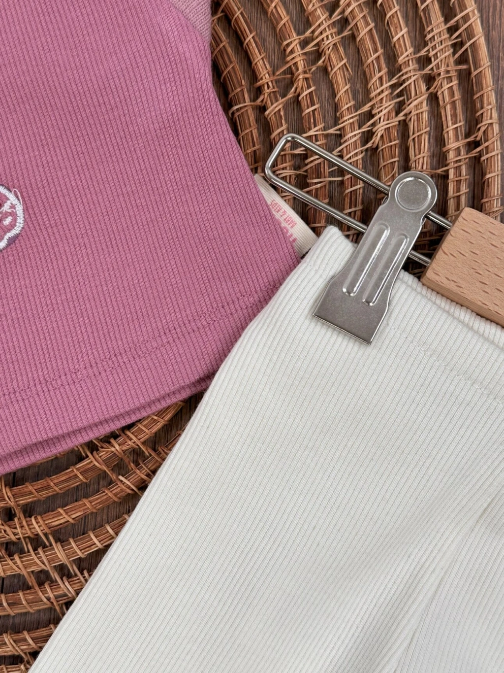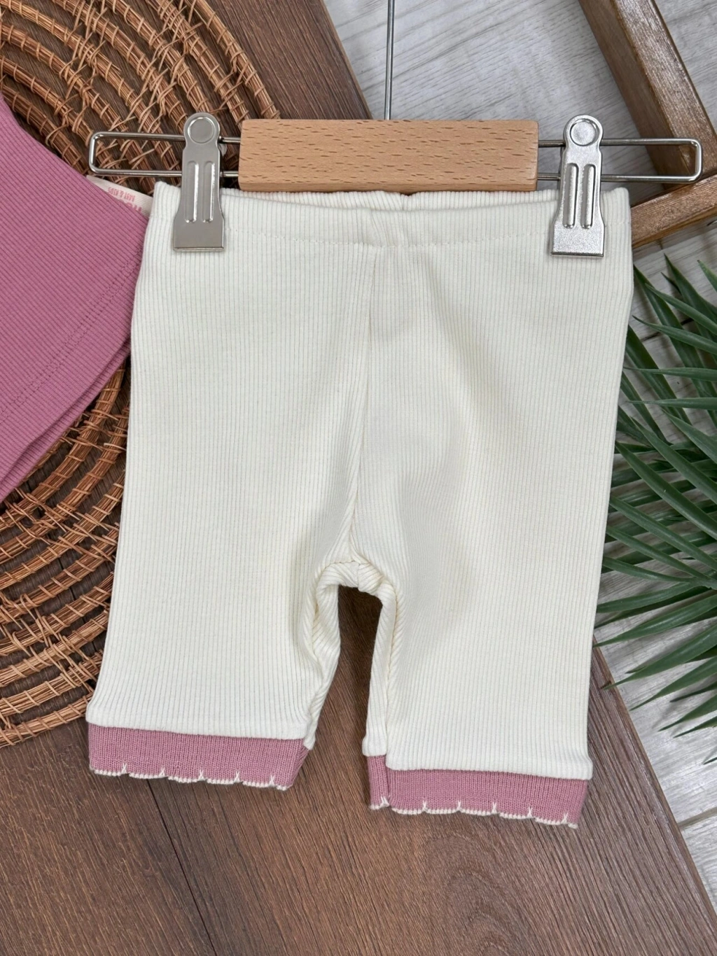 KREM BİSİKLET YAKA KISA KOLLU LASTİKLİ BEL KIZ ÇOCUK & BEBEK ALT ÜST TAKIM