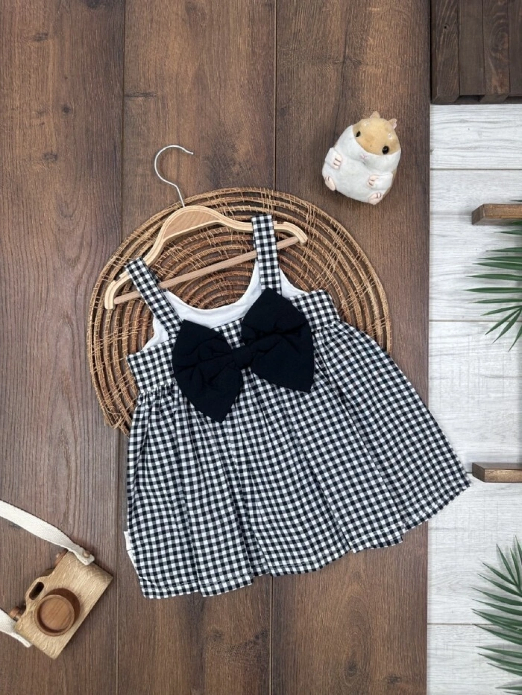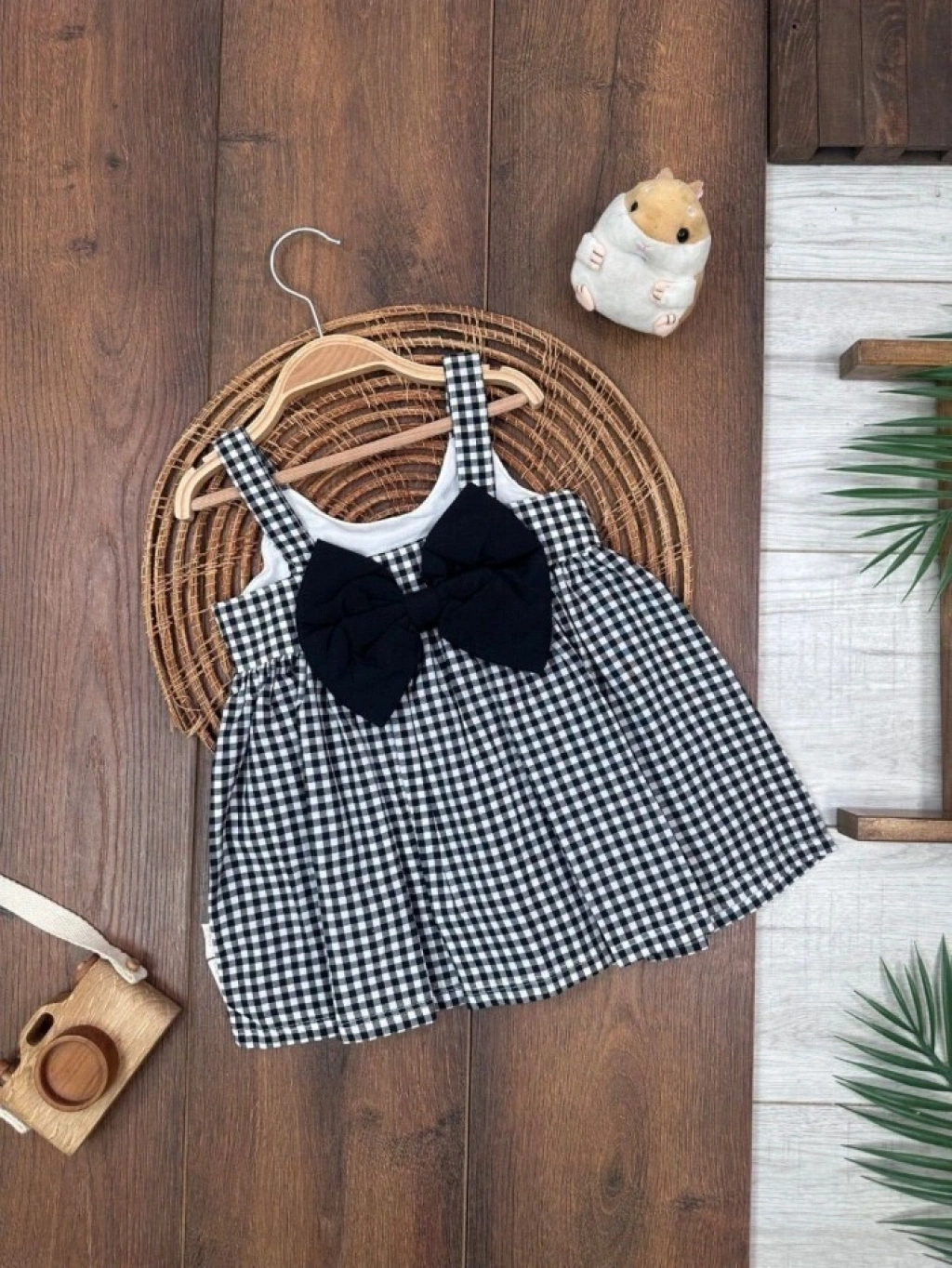 Çiçek Askılı Külotlu 2li Kız Bebek Elbise