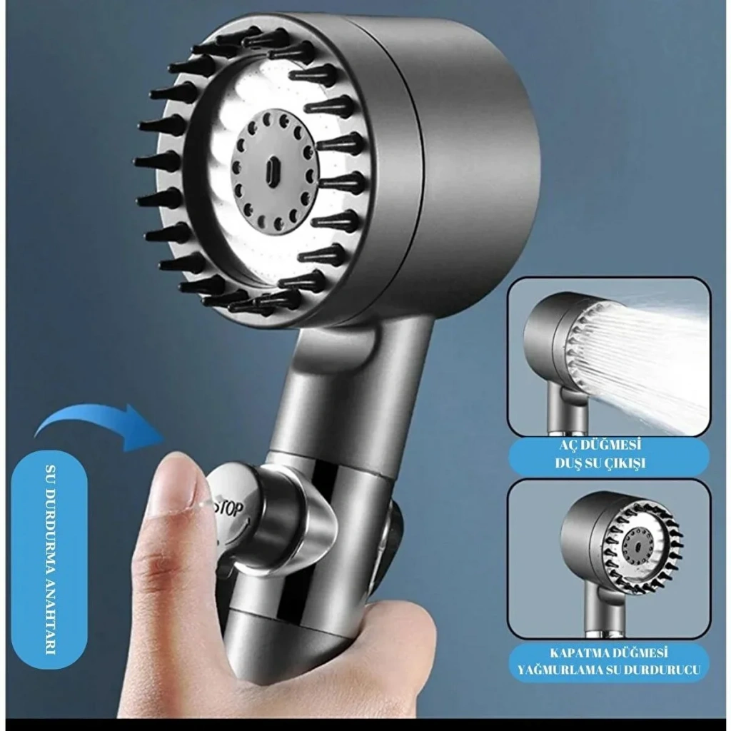 Yeni Nesil Masaj Uçlu Filtreli Stop Tuşlu 3 Fonksiyonlu Su Tasarruflu Basınçlı Duş Başlığı