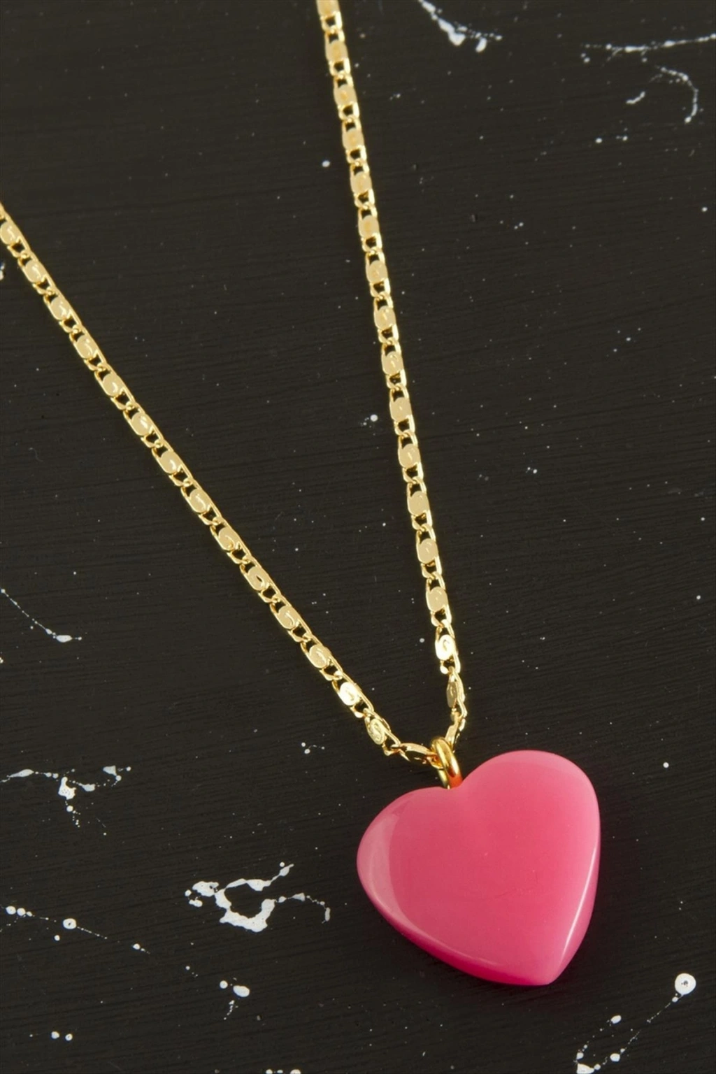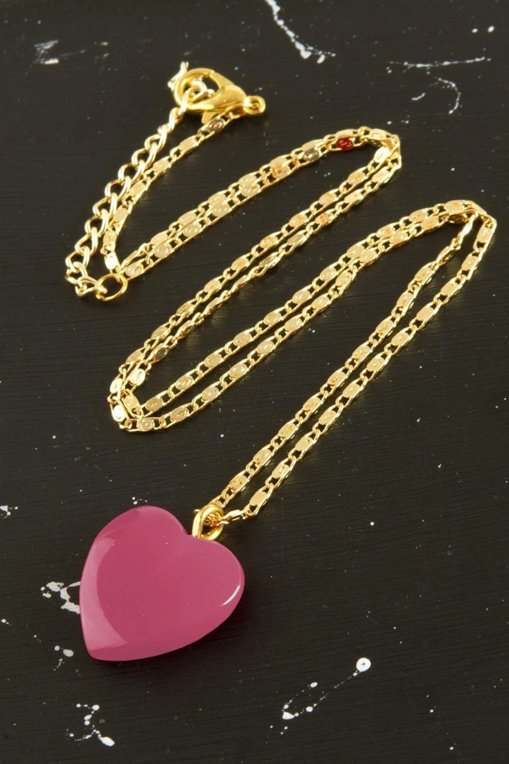 Kolye; Ürün zincir bölümü metal ve kalp bölümü plastiktir. Zincir uzunluğu 45 cm ve ucundaki kalp aparat boyu 2 cmdir.