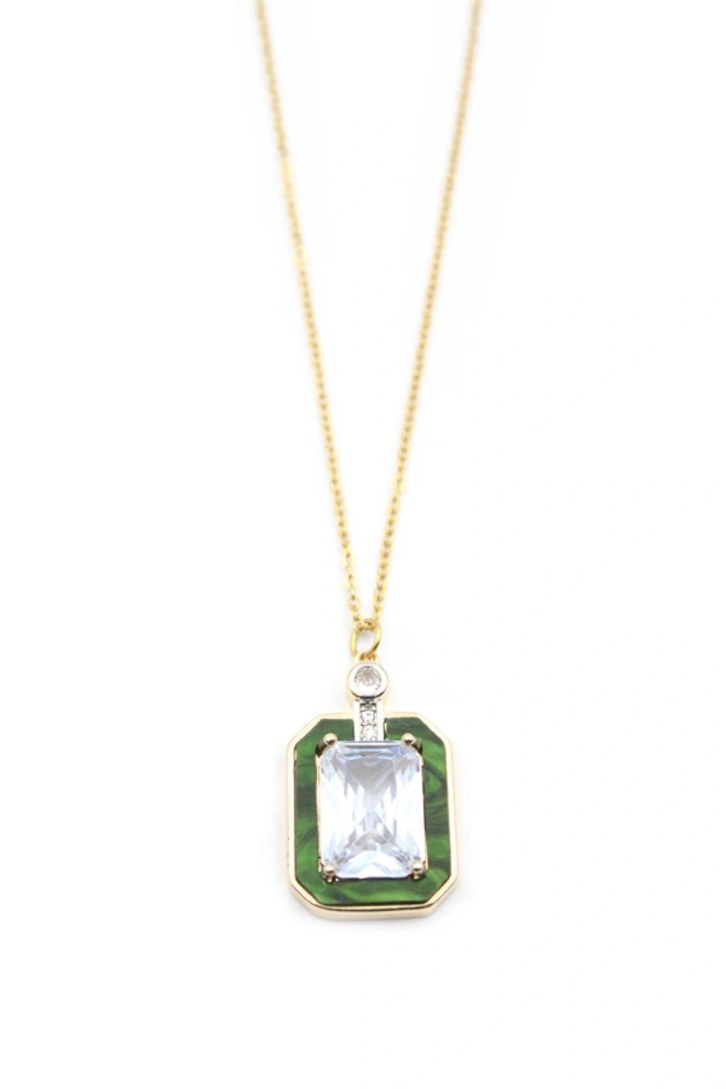 Yeşil Detaylı Taşlı Kolye - Altın