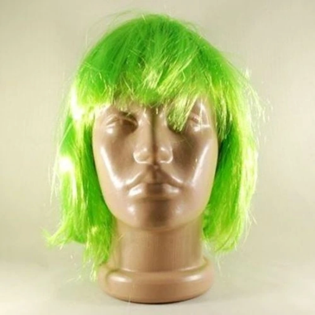 Yeşil renk parti peruğu ile partilerin en dikkat çekicisi siz olabilirsiniz.Astarlı iç yapısı sayesinde kullanımı kolaydır. Kafanıza takarken saçınızda bir bozulma ve yıpratma yapmaz30 cm boyunda olup sentetik malzemeden imal edilmiştir.Ürünün orijinal yapısı yetişkinler içindir. Çocuklar için kullanımlarda , içindeki astarı daraltmanız yeterlidir.Kullanmadan önce peruğu sallayınız.