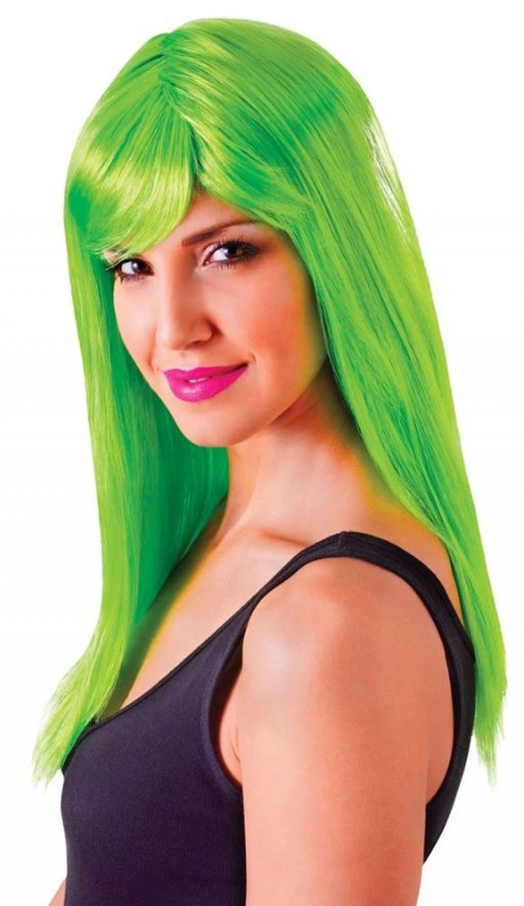 Yeşil Renk Uzun Düz Parti Peruğu