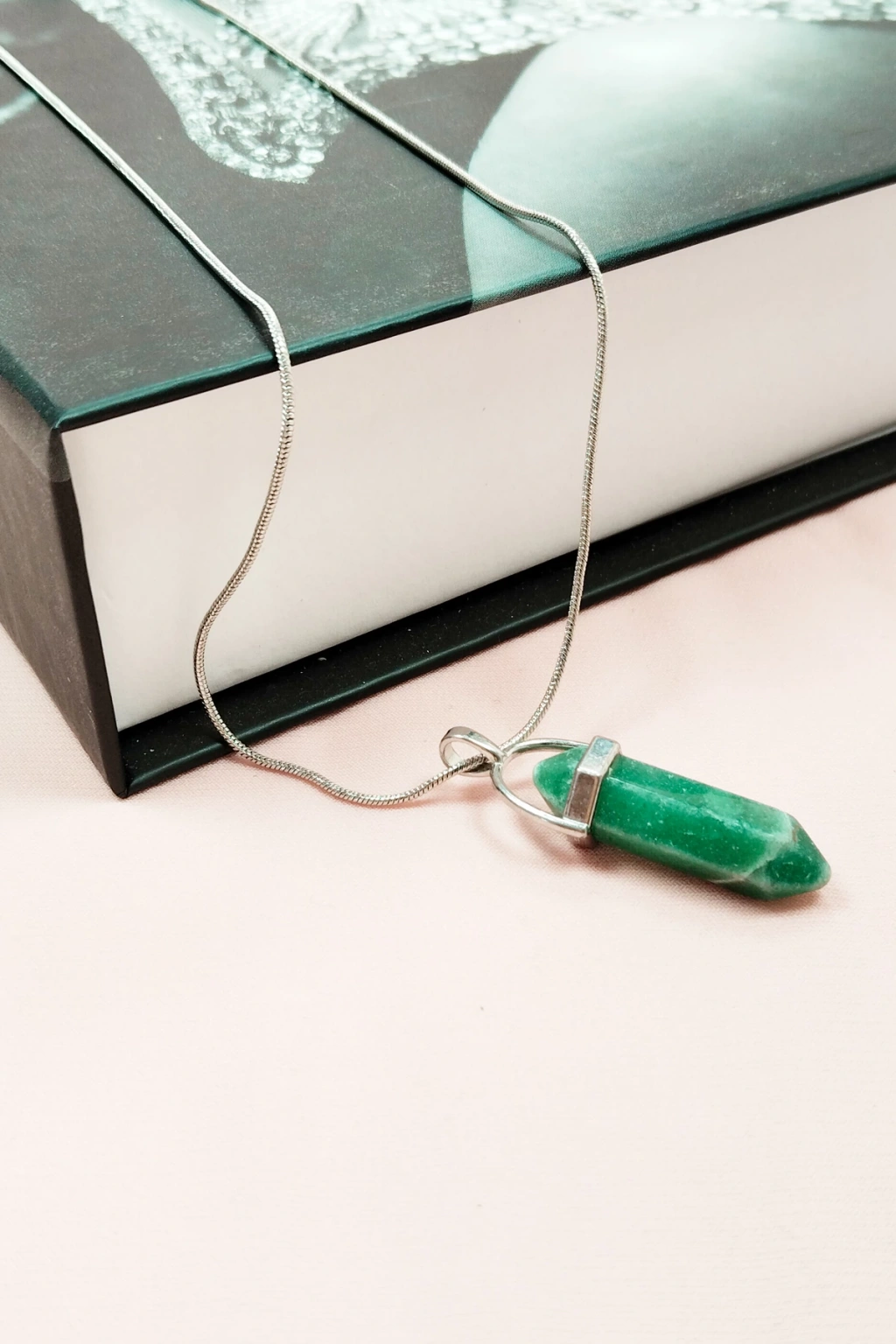 Yeşil Kuvars Doğal Taşı Zincirli El Yapımı Tasarımlı Kolye Uç: 3,5 cm Zincir: 20 cm Kutulu