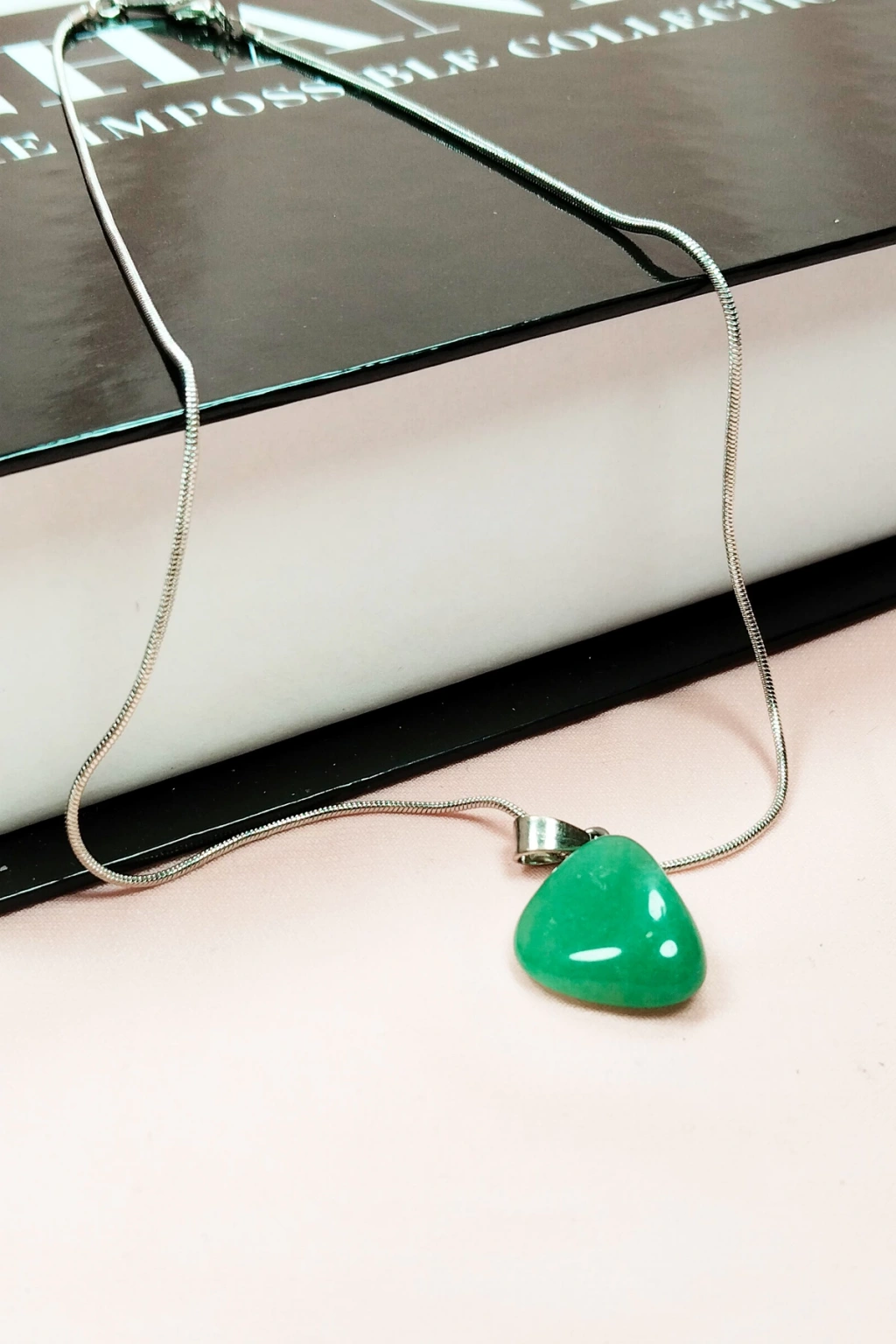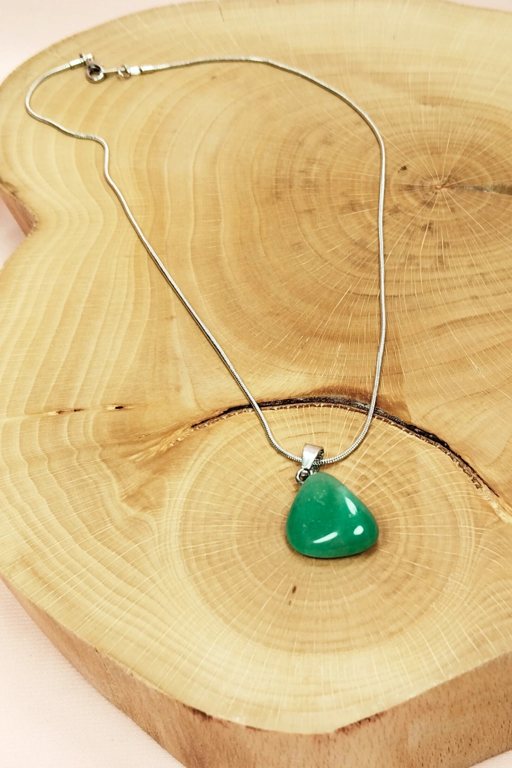 Yeşil Kuvars Doğal Taşı Zincirli El Yapımı Tasarımlı Kolye Uç: 3,5 cm Zincir: 20 cm Kutulu