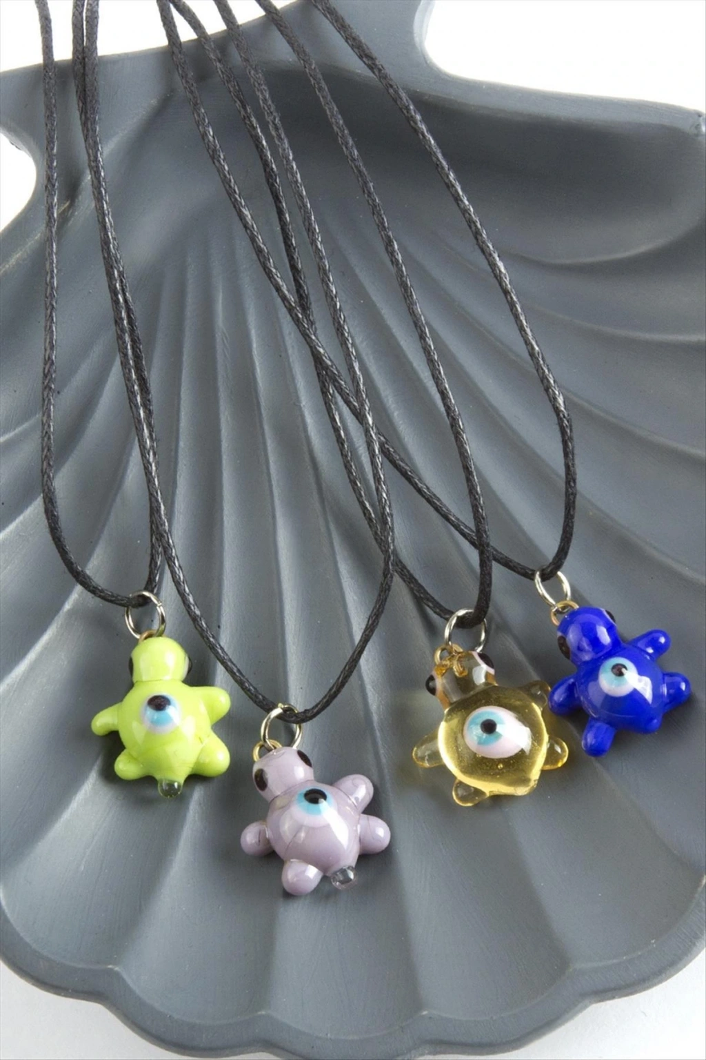 Cam Kolye; Kordonu vinlex deridir. Ürün ustalarımız tarafından atölyemizde tek tek el işçiliği ile üretilmektedir. İmalatımız da yerli cam ve orijinal italyan cam kullanılmaktadır. Cam ürünlerinde sanatsal bir işçilikle çalışılmaktadır. Ürün asortilidir. Siparişleriniz de karışık olarak gönderilecektir. Ürün cam boyu 1,5 cm ve ip boyu 45 cmdir.