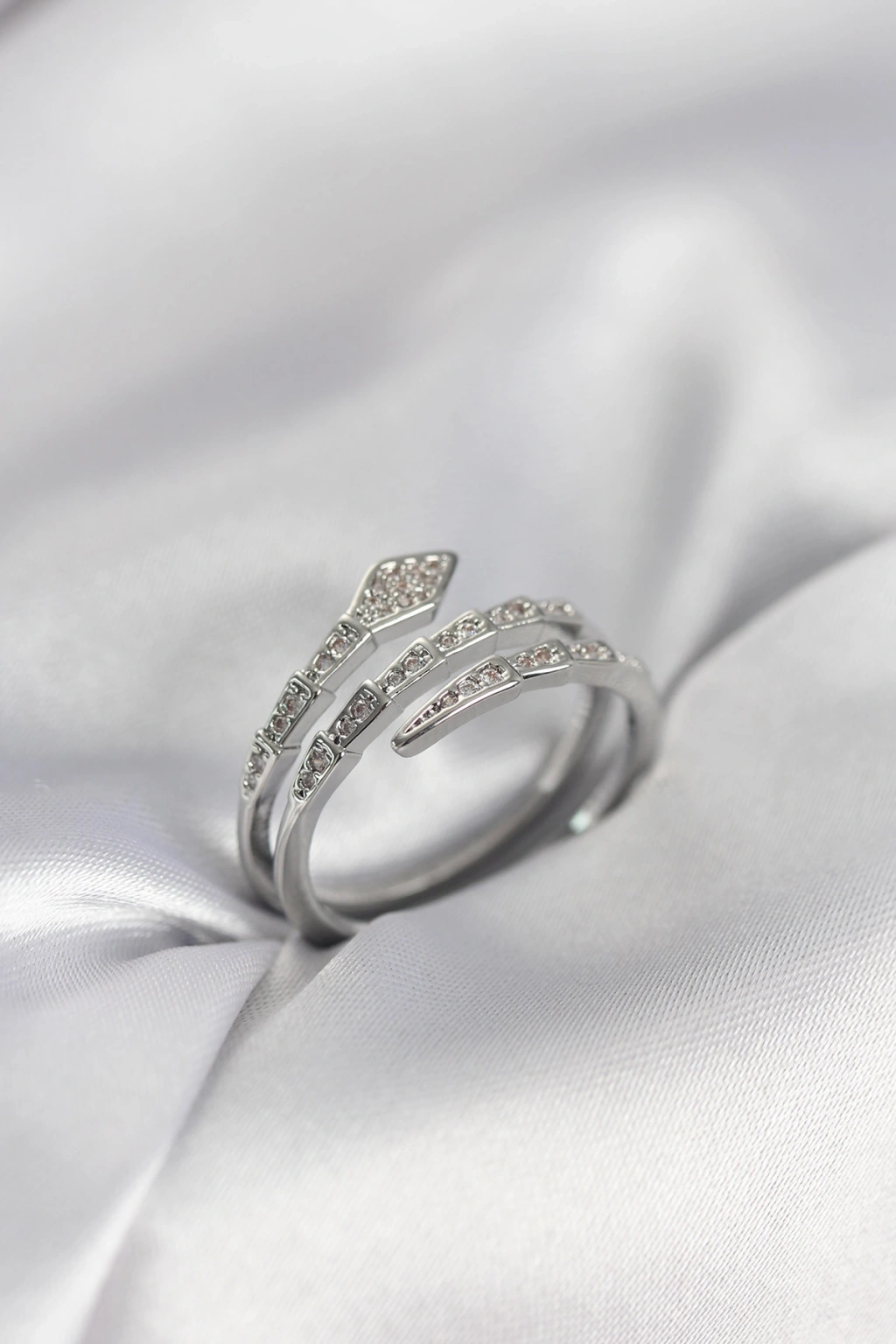 Yılan Model Gümüş Renk Zirkon Taşlı Kadın Yüzük - TJ-BYK3980