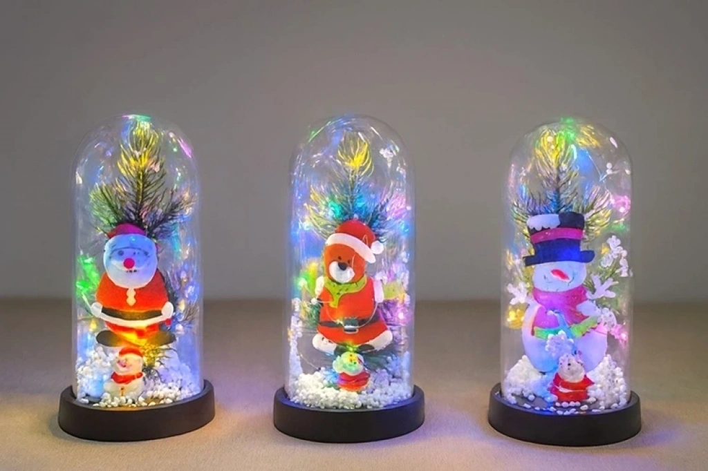 Yılbaşı Temalı Işıklı Dekoratif Cam Fanus - Model 10