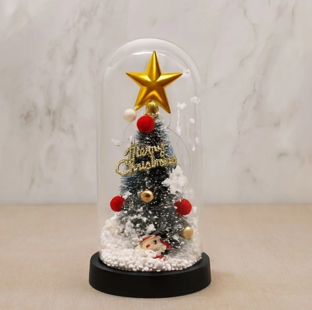 Yılbaşı Temalı Işıklı Dekoratif Cam Fanus - Model 10