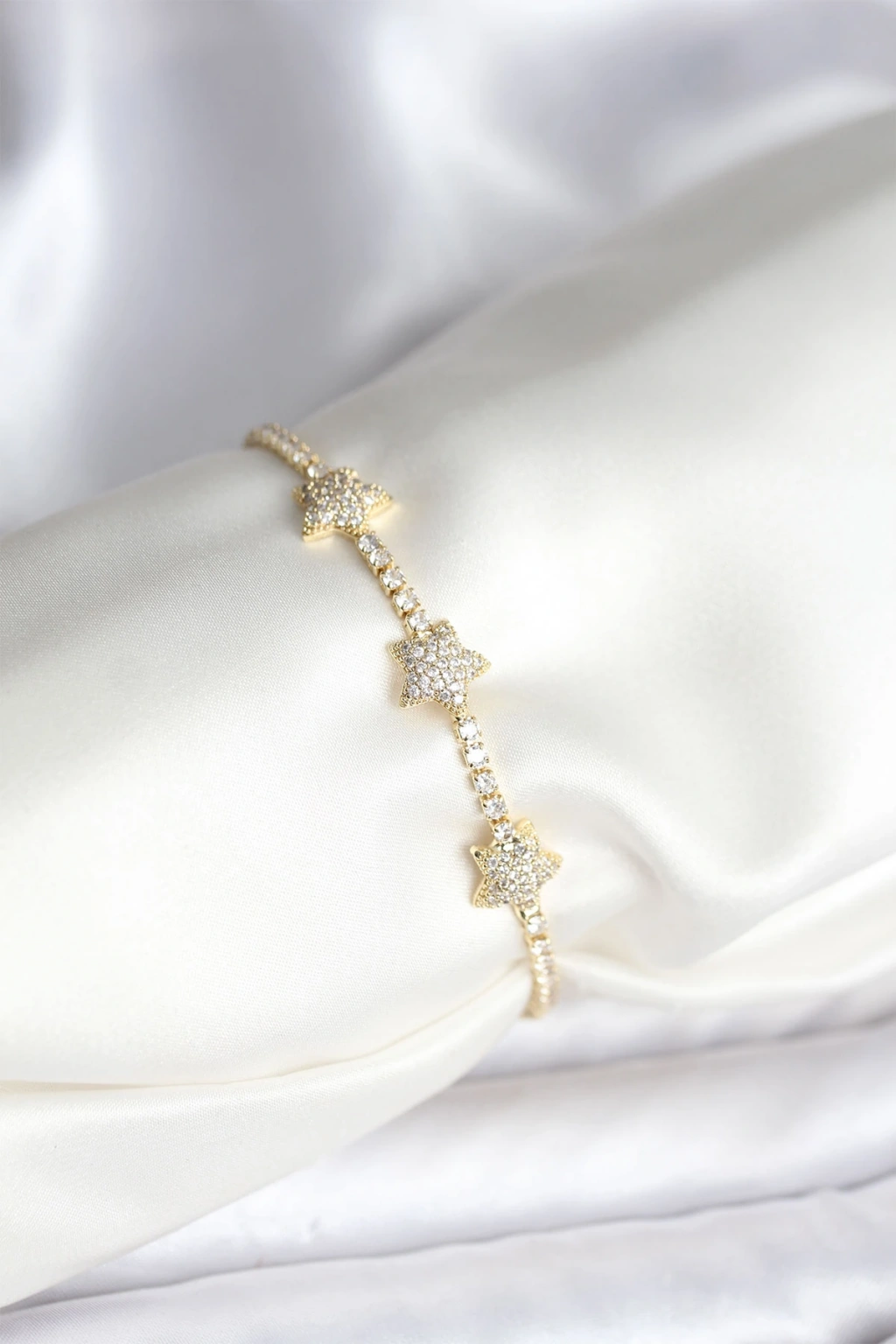 Yıldız Model Zirkon Taşlı Gold Renk Pirinç Su Yolu Kadın Bileklik - TJ-BB8096
