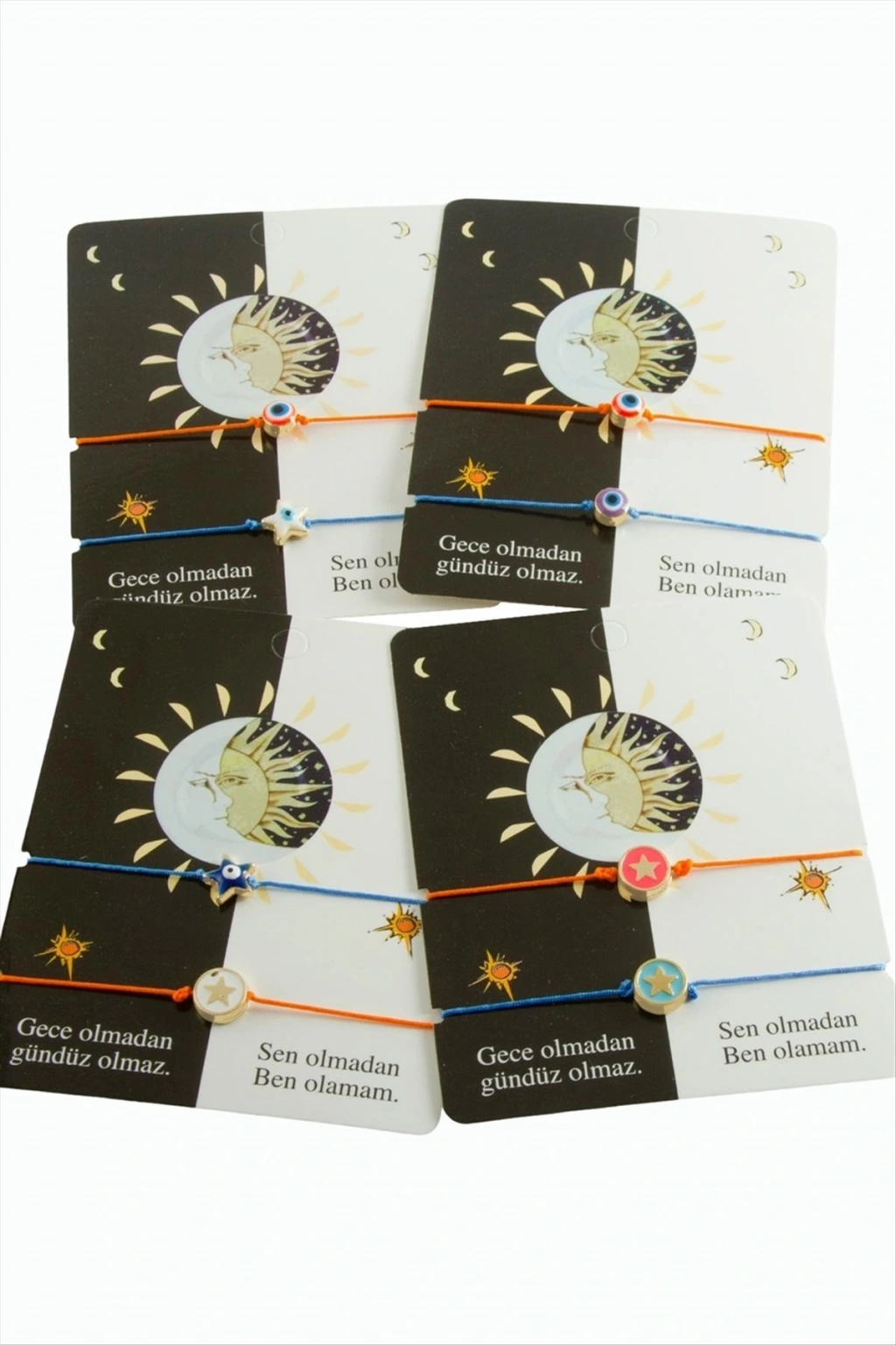 Bileklik; Ürün malzemesi metal ve iptir. Ürün kartlıdır. 1 kartta 2 adet olarak gönderilecektir. Bileğe göre ayarlanabilir. Ürün renkeri ve figürleri asortilidir. Siparişlerinizde karışık olarak gönderilecektir.