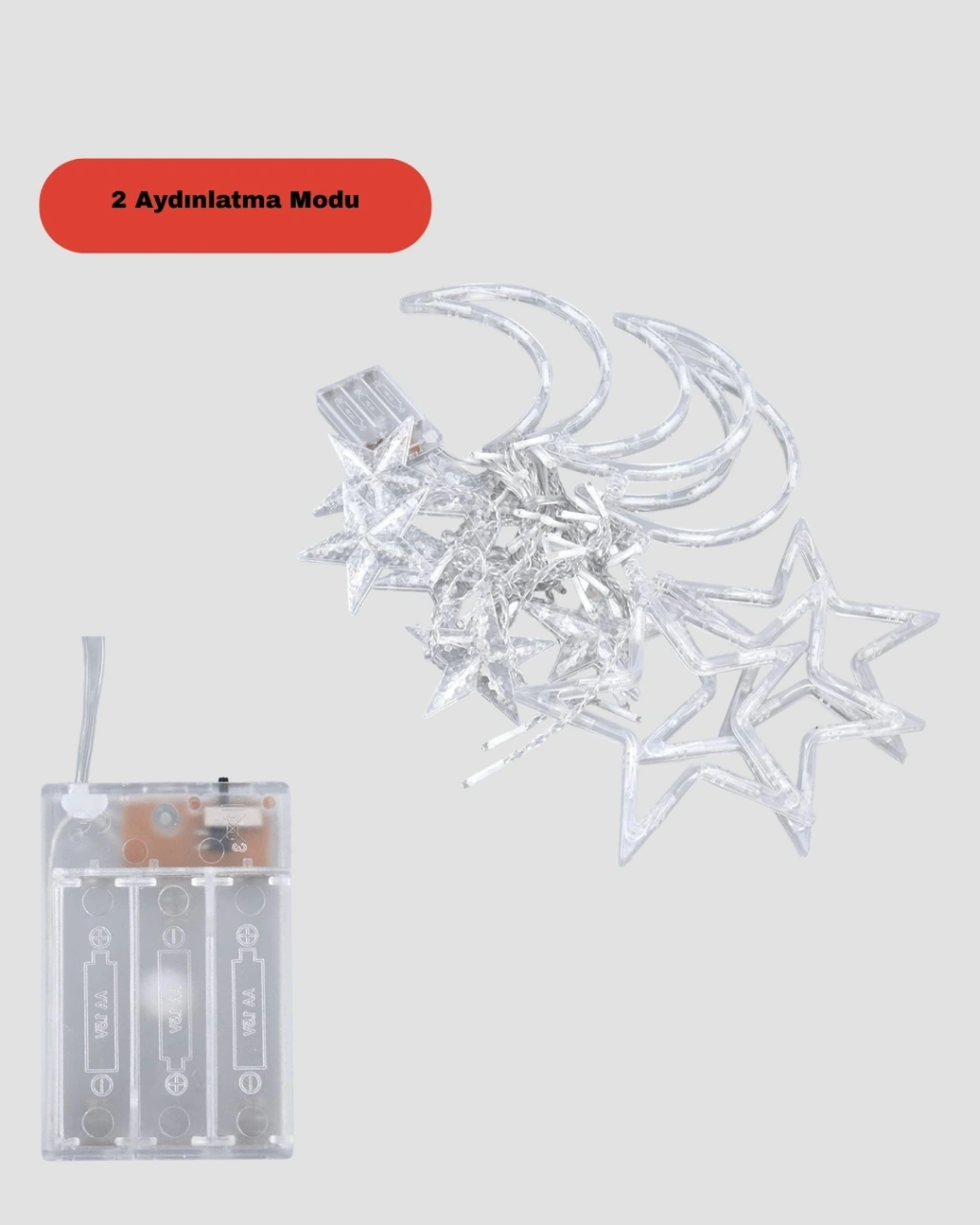 Prizli Yıldız Ay Perde LED Işık, ev ve ticari alanlarda dekoratif aydınlatma ihtiyacını karşılamak üzere tasarlanmıştır. Yıldız ve ay figürlerinin oluşturduğu zarif tasarım, mekâna masalsı ve romantik bir hava katar.Toplam 126 LED içeren yapı, dengeli ışık yayılımı sağlar. Göz yormayan yapısı ile uzun süreli kullanımlarda konfor sunar. Sabit ve yanıp sönme olmak üzere iki farklı ışık modu ile ortamın havası kolayca değiştirilebilir.Prizden çalışması, ürünün kesintisiz ve stabil bir şekilde kullanılmasını sağlar. Elektrik bağlantısı olan her alanda güvenle kullanılabilir. Pil değiştirme derdi olmadan uzun süreli dekorasyonlar için idealdir.PVC kaplı kablo yapısı güvenli kullanım sunar ve ısınma yapmaz. Kurulumu oldukça basittir ve farklı alanlarda kolayca kullanılabilir. Ev dekorasyonundan organizasyon süslemelerine kadar geniş bir kullanım alanı sunar.