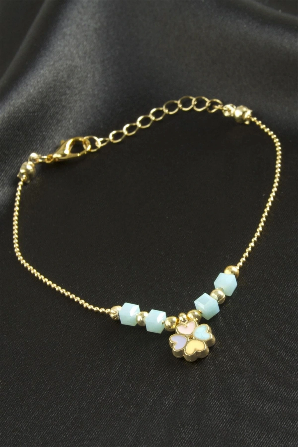 Bileklik; Ürün malzemesi metal ve kristaldir. Ürün boyu 19 cmdir. Kartlıdır. 1 sınıf kaliteli malzemeden üretilmiştir.