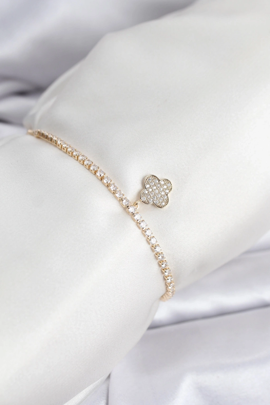 Yonca Model Zirkon Taşlı Gold Renk Asansörlü Su Yolu Bileklik - TJ-BB8244