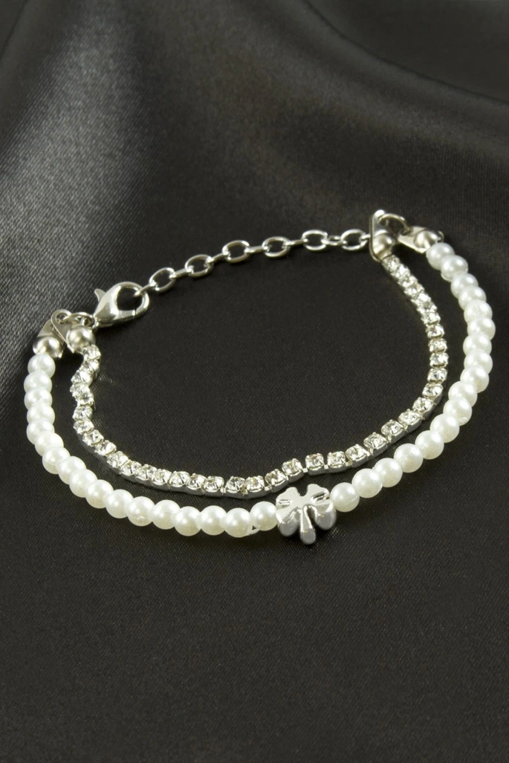 Yonca Şerit Taşlı İnci Bileklik