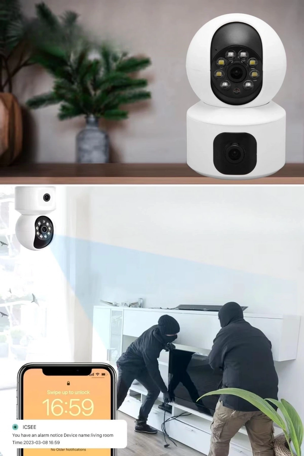 Çift Kameralı Güvenlik Kamerası: Çift kamera teknolojisi, geniş açılı görüntüleme sağlar ve evinizin daha fazla alanını kapsayarak daha güvenli bir izleme deneyimi sunar.