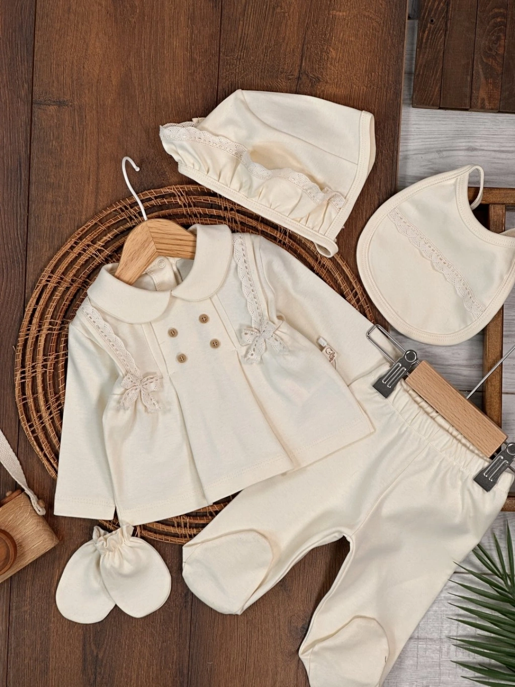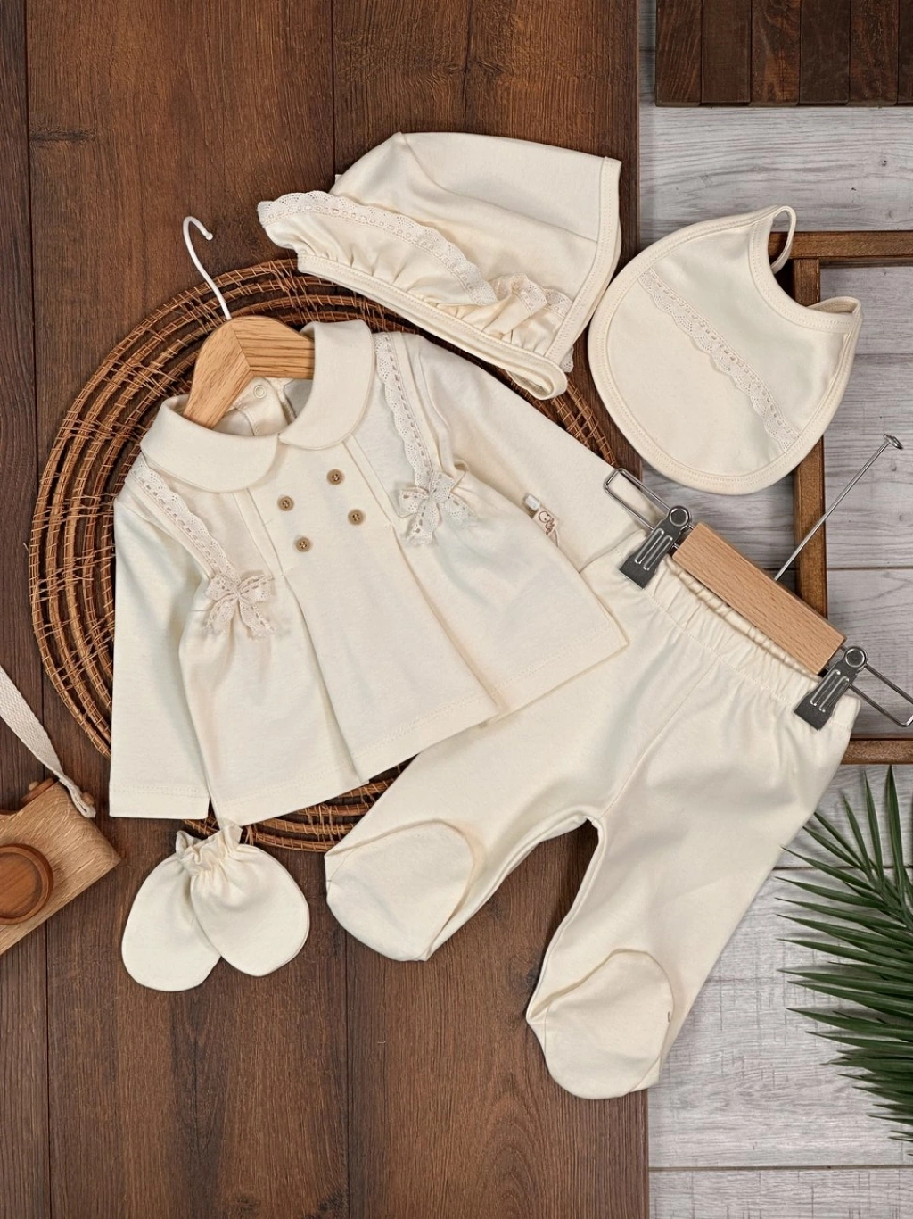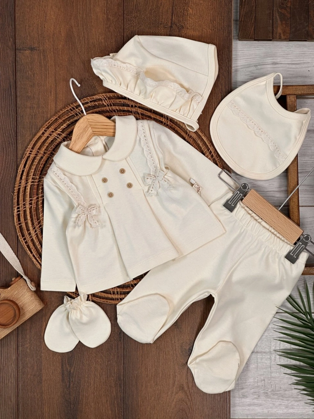 Yüksek Kalite Pamuk Kız Bebek 5li Hastane Çıkış Seti